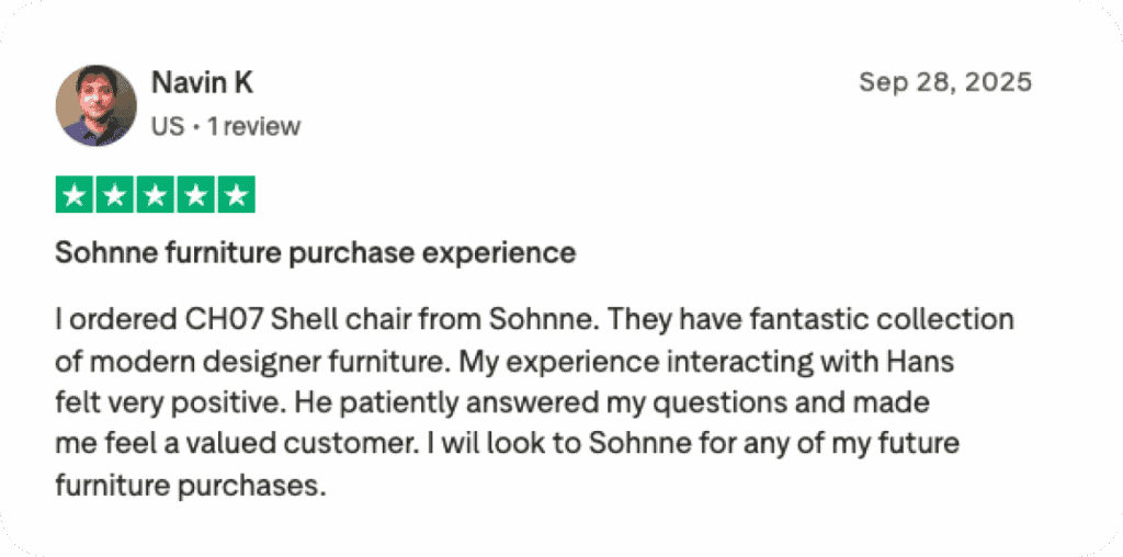 When Navin received four CH07 Shell Chairs, he quickly noticed that one of them had misaligned screw holes that made assembly impossible. He reached out for help, sharing photos and videos to document the issue. After several rounds of troubleshooting and follow-up, Navin remained dissatisfied with the overall product quality and requested a return. The process took longer than expected, but our team continued working with him until a resolution was reached. Ultimately, we processed a 20% refund and allowed Navin to keep all four chairs, ensuring he felt heard, respected, and fairly treated.