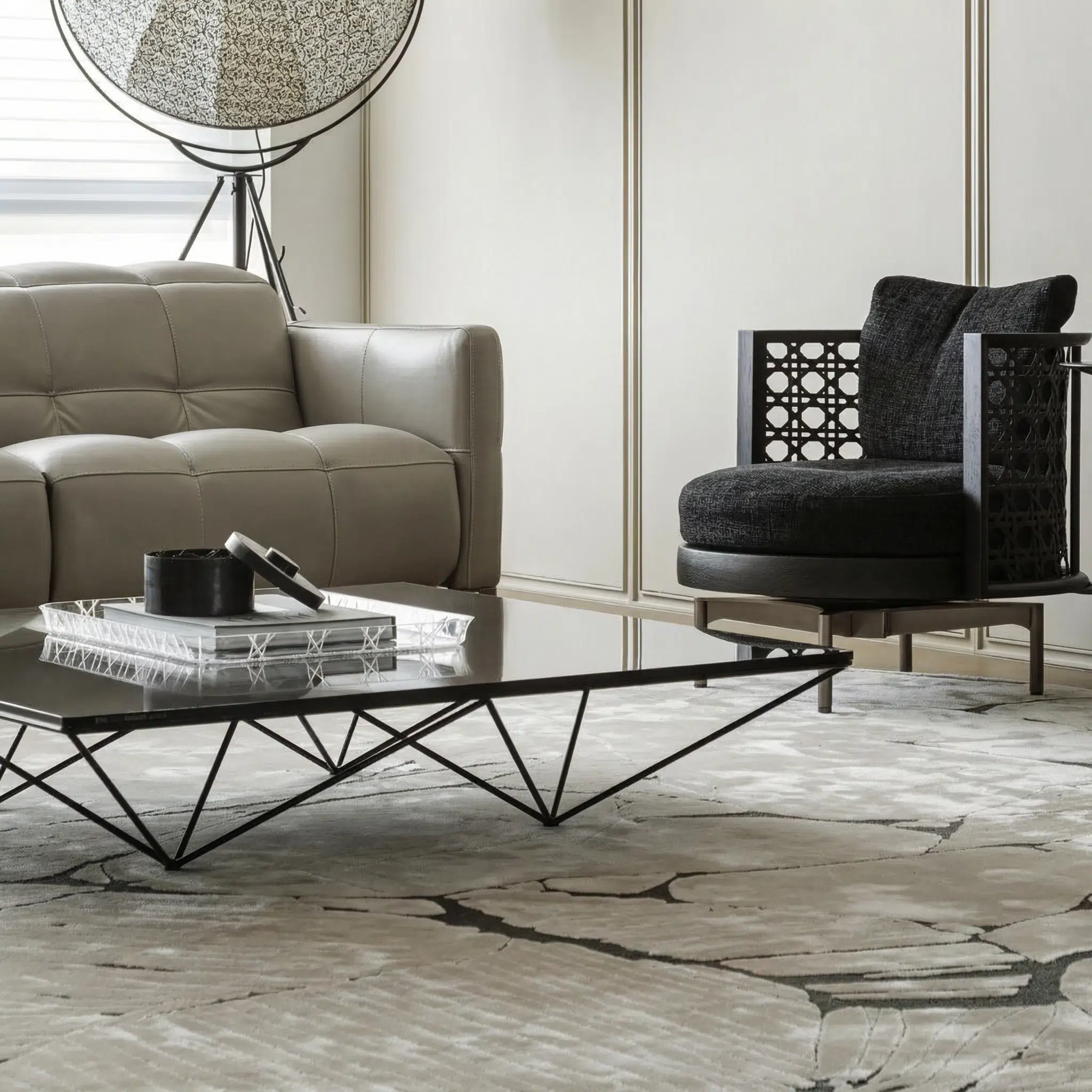 Powder-coated black steel frame forms a geometric, cross-braced grid for optimal strength and stability. Ensures even weight distribution and adds a bold architectural accent to any room.