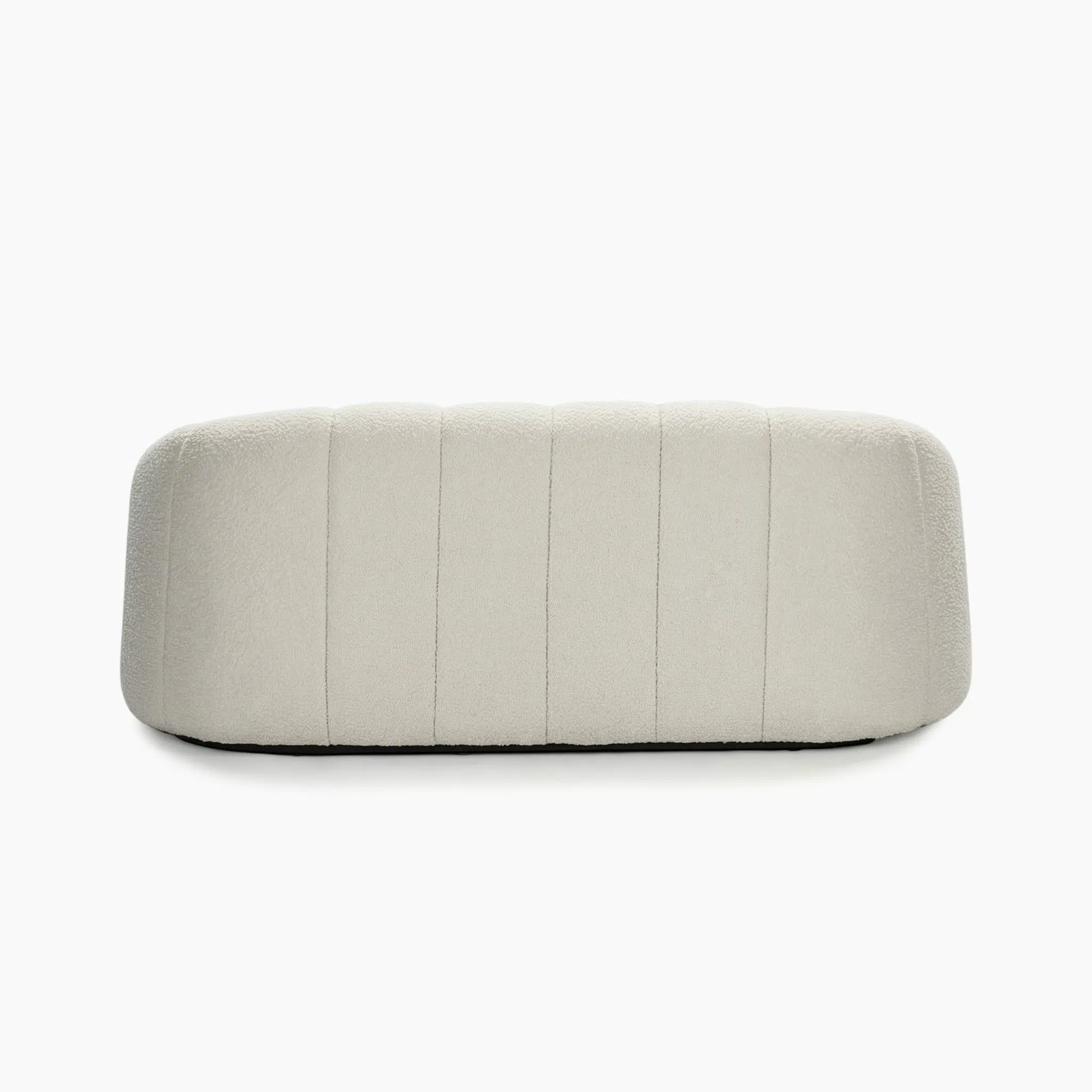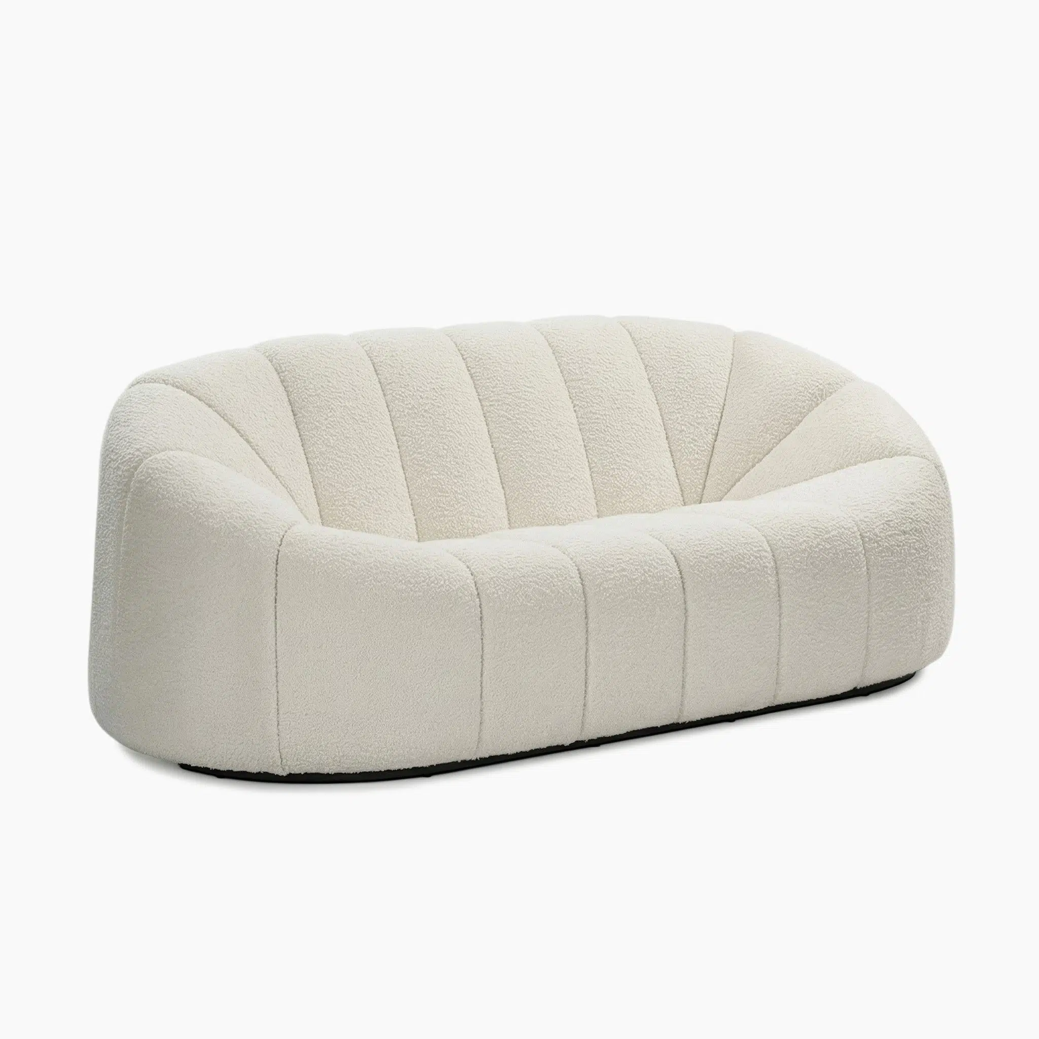 Black-painted iron feet provide grounded stability and subtly contrast the plush, rounded upper form.