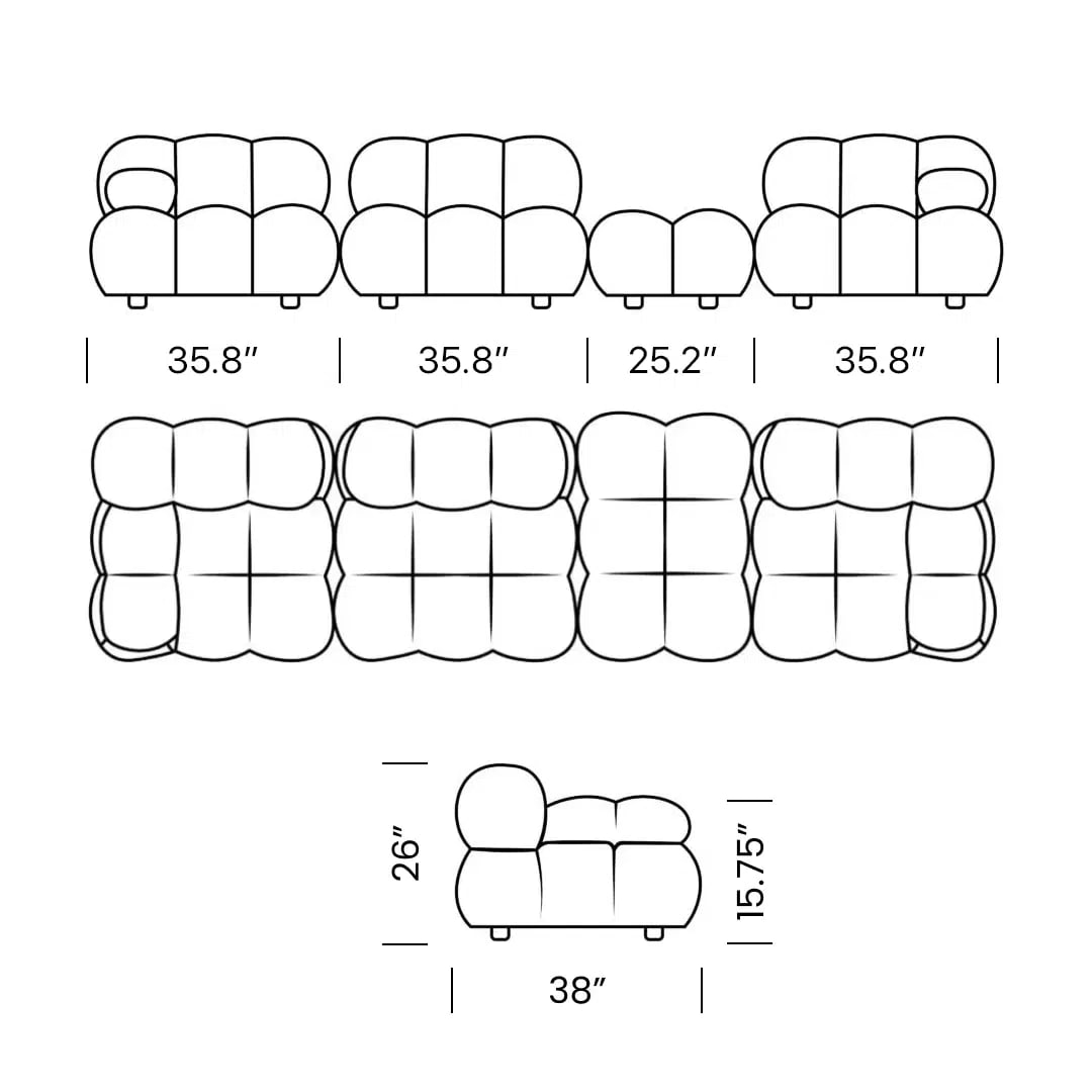 Sofa: 35.8 W x 38 D x 26 H inches |
