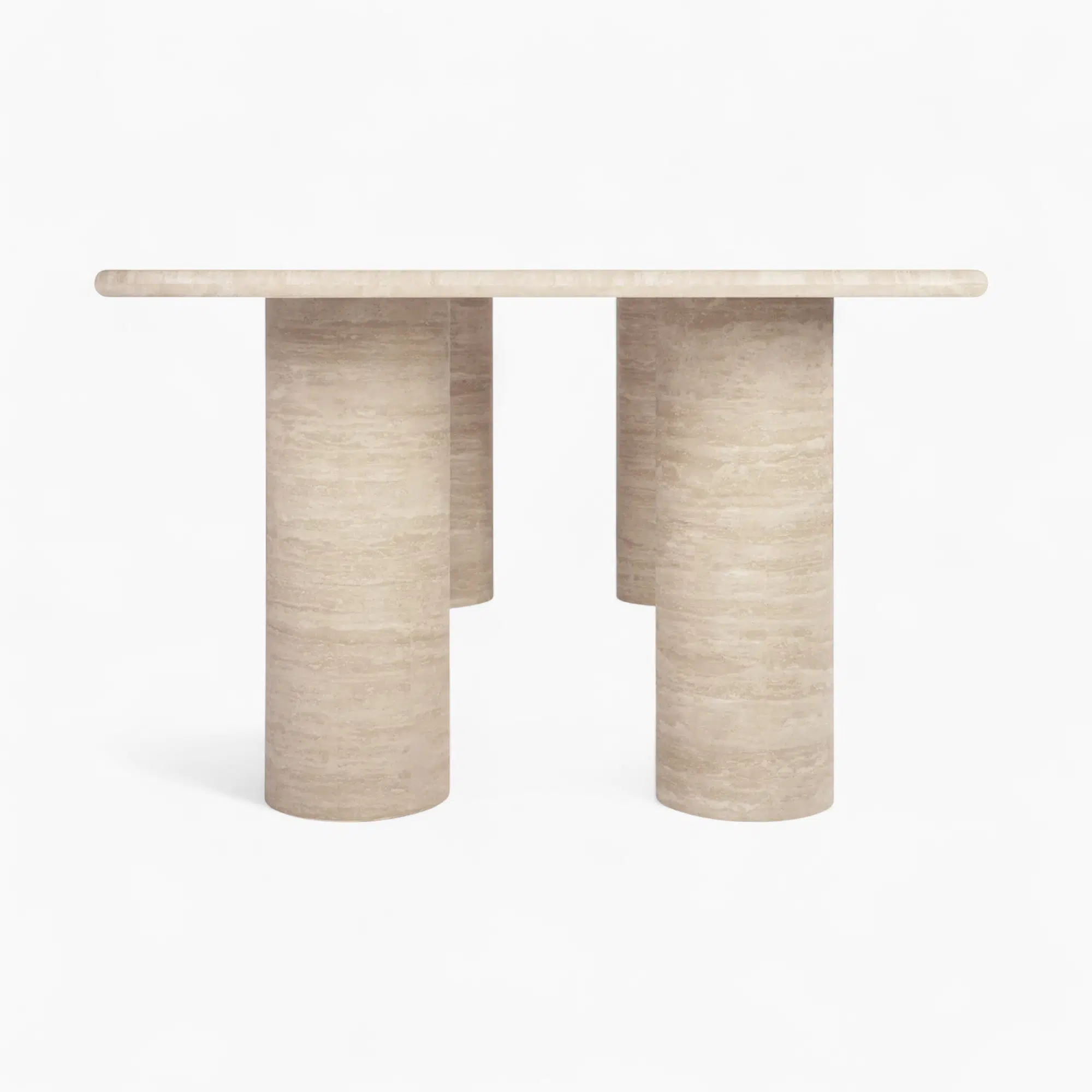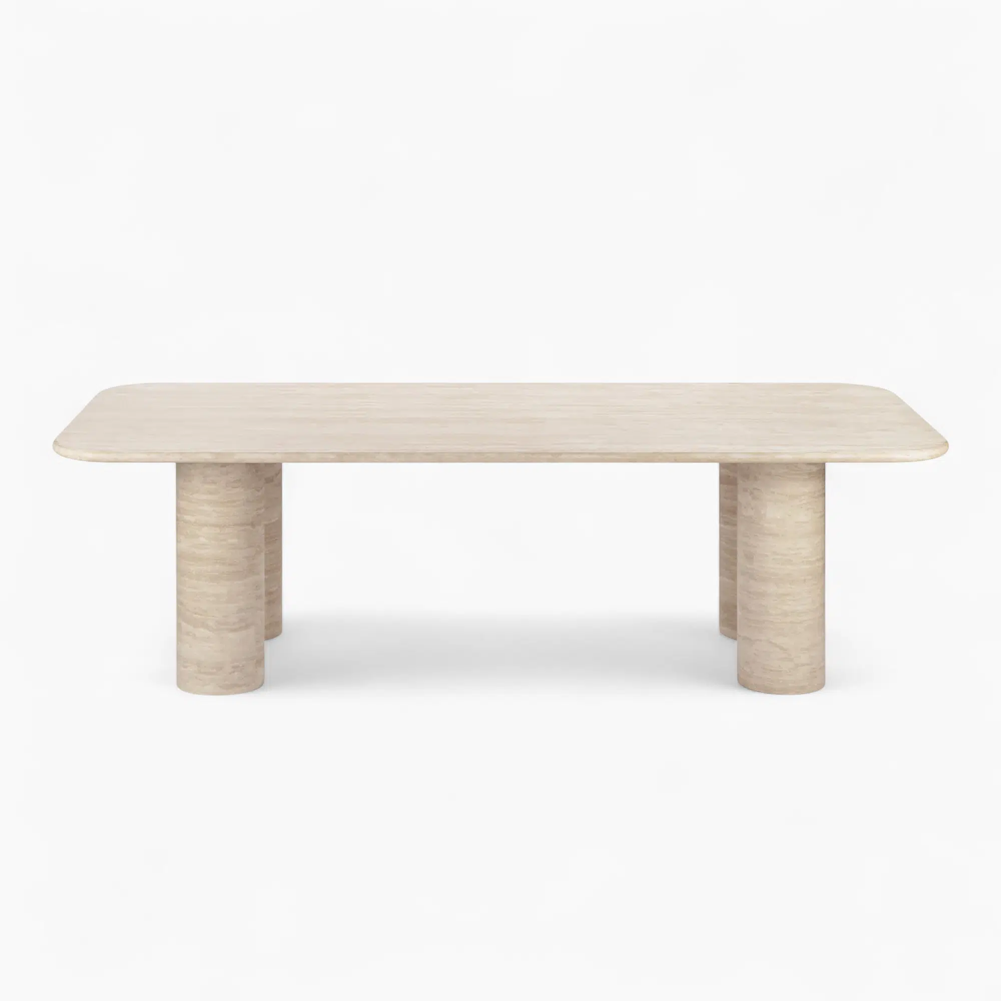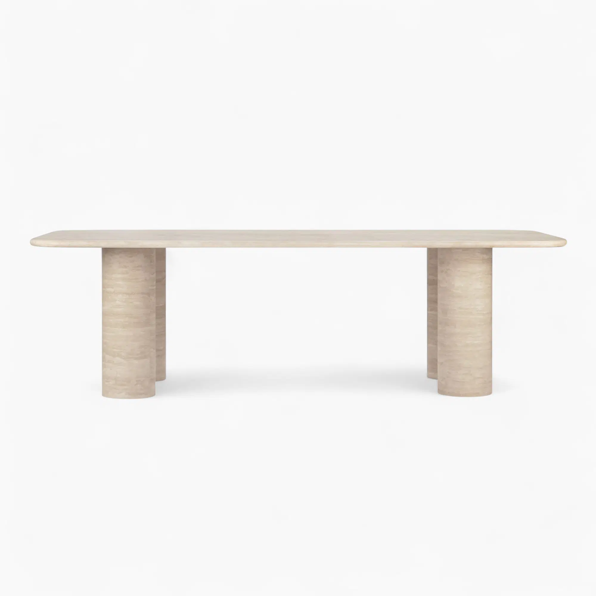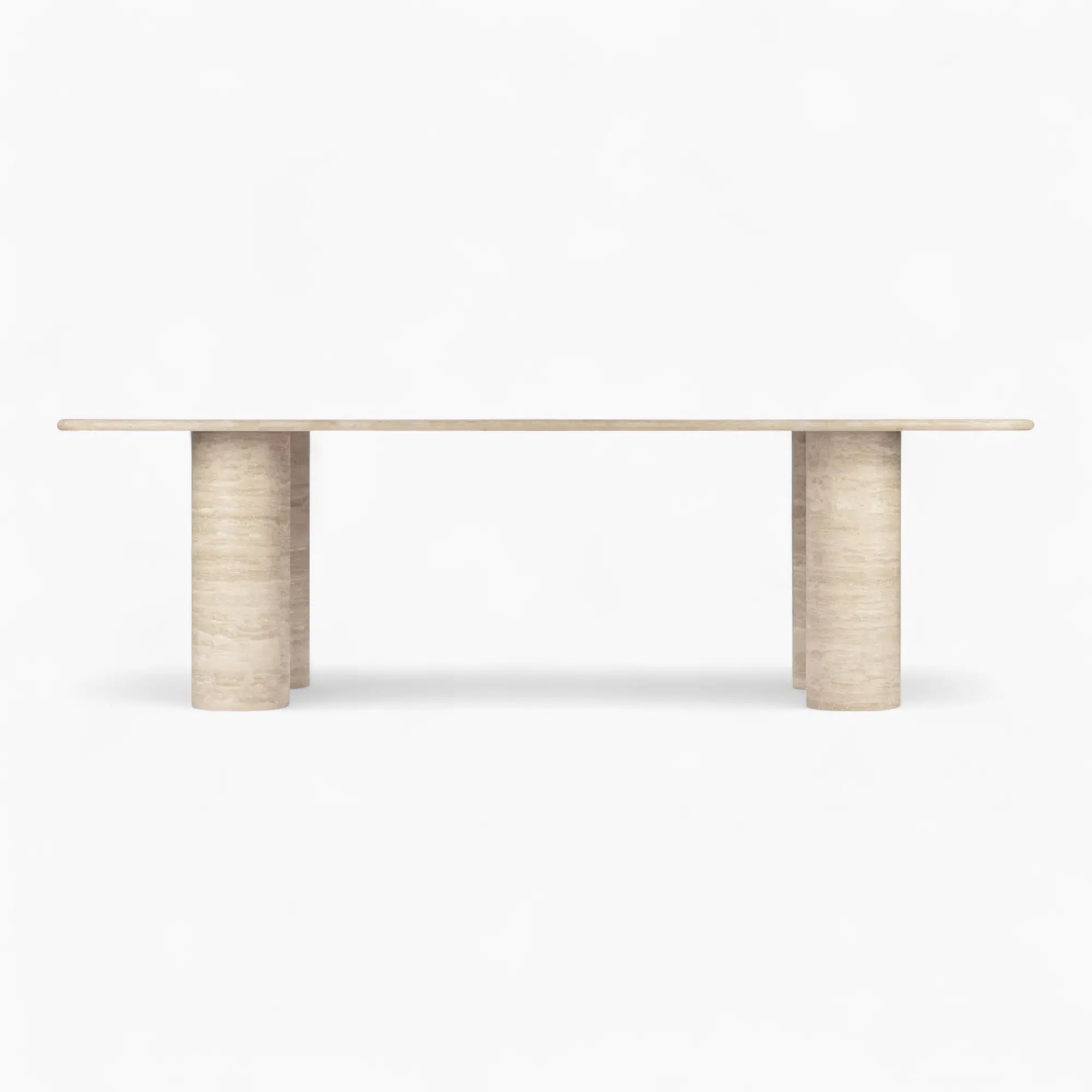Emerging from the timeless spirit of mid-century Italian design, the Cato Dining Table embodies the elegance and permanence of natural travertine. Its sculpted silhouette and expansive stone surface highlight the organic veins and subtle warmth unique to every piece, creating a refined yet inviting centerpiece.
