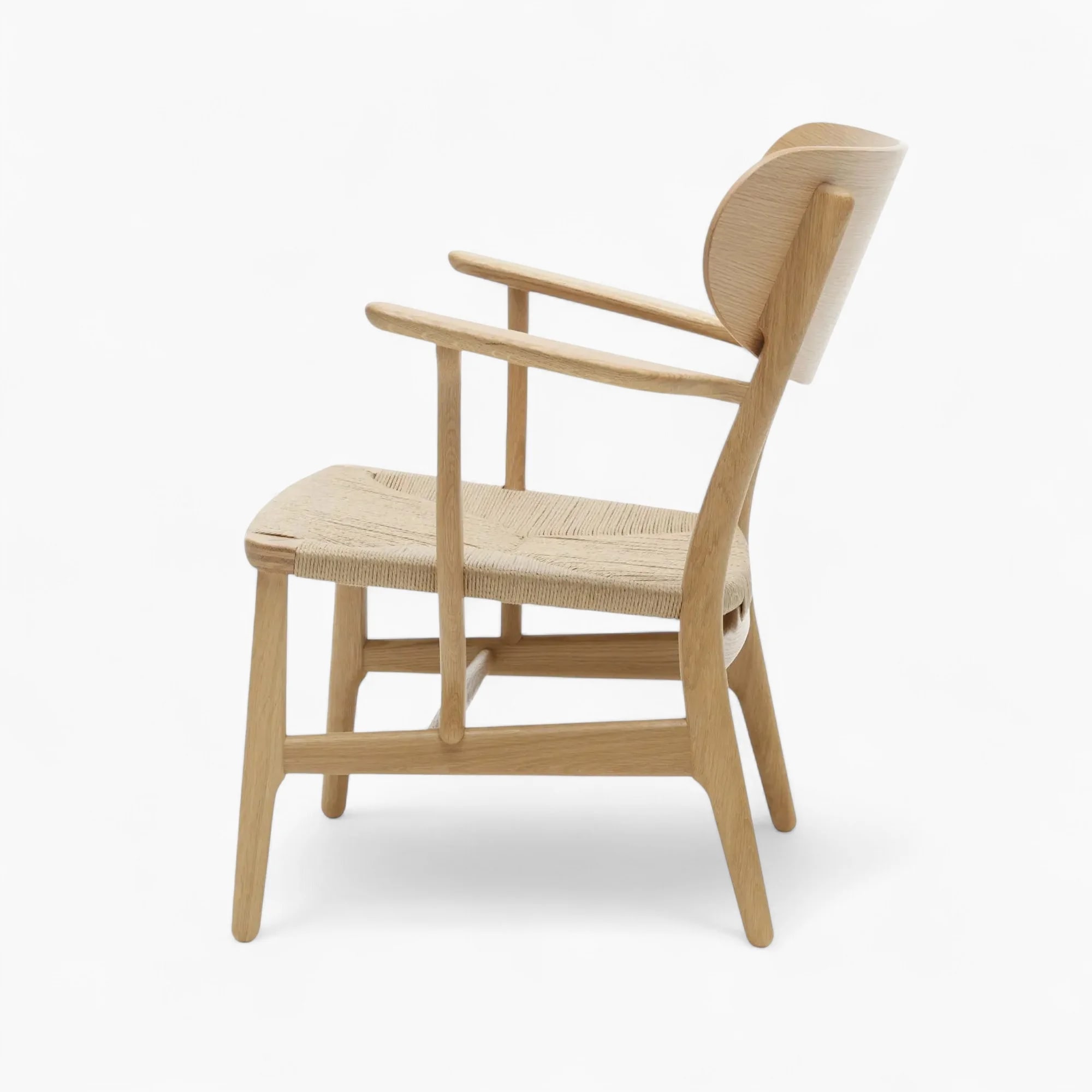 CH22 Lounge Chair echoes the design of balanced, modern furniture aesthetic in the 1950s. The chair truly embodies ergonomic comfort with its supportive seat, slightly reclined back, and wide armrests. One of the signature part of this design is the paper cord seat woven by hand and the finely sculpted armrest. Despite its minimalist shape, the chair looks beautiful and felt great to sit in. |