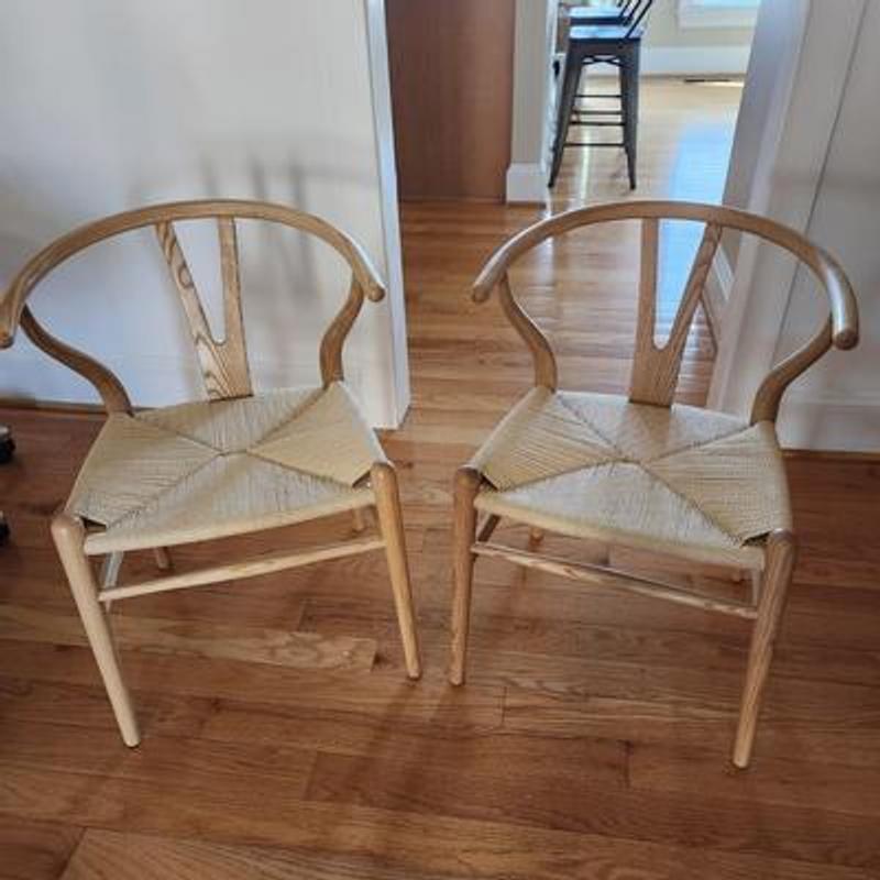 The CH24 Wishbone Chair is built from solid oak with a handwoven paper cord seat. The joinery uses traditional mortise-and-tenon construction for long-lasting stability.