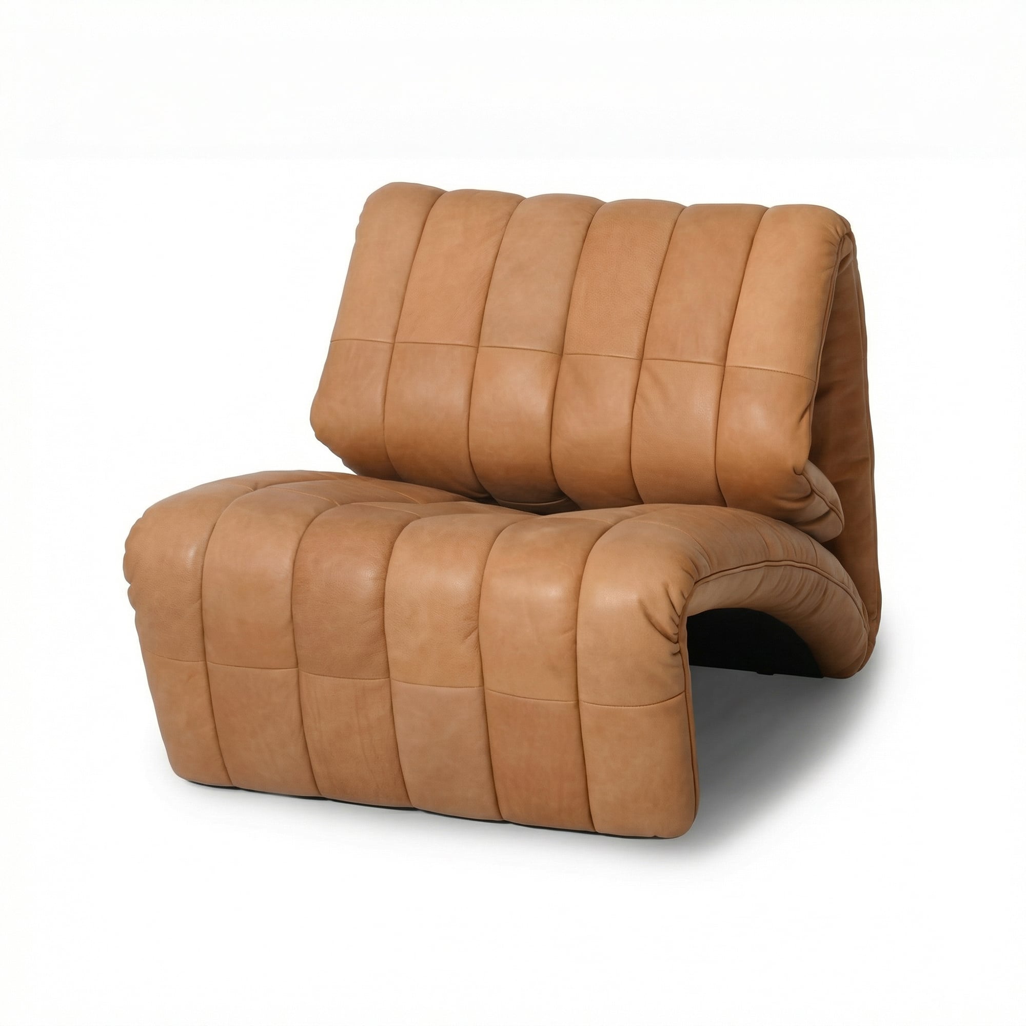 Emerging from the innovative design movement of the late 20th century, the DS-266 Yoga Chair reflects the era’s fascination with geometric form and functional transformation. Inspired by Stefan Heiliger’s pioneering approach, this sculptural armchair redefines comfort through movement, shifting effortlessly from an upright seat to a fully reclined position with a subtle change in body weight.