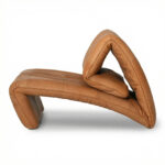 Each curve is wrapped in masterfully stitched leather panels, creating a patchwork surface that enhances the visual flow and artisanal feel of the piece.