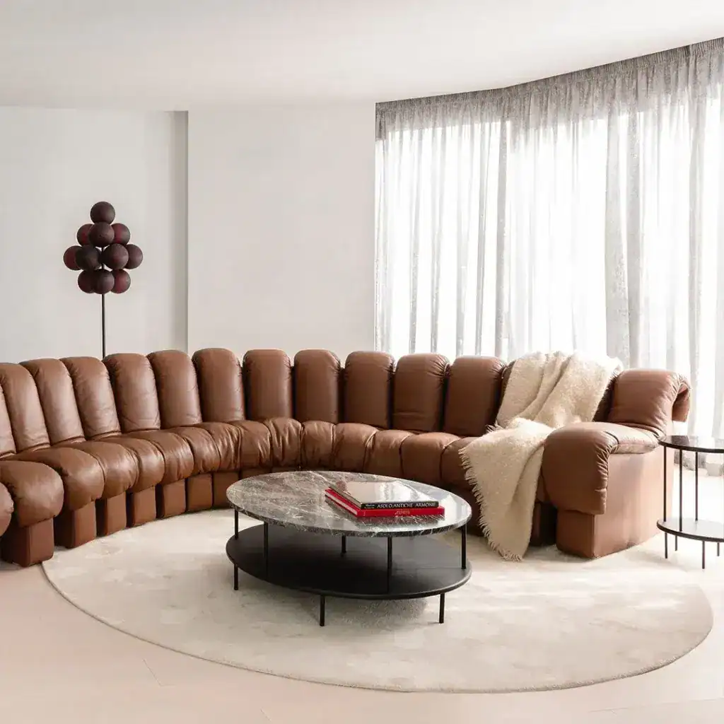 Segments connect seamlessly, letting you customize length and shape for any room. Flexible modular design delivers 1:1 proportions and iconic, snake-like curves, ideal for intimate corners or statement living areas.