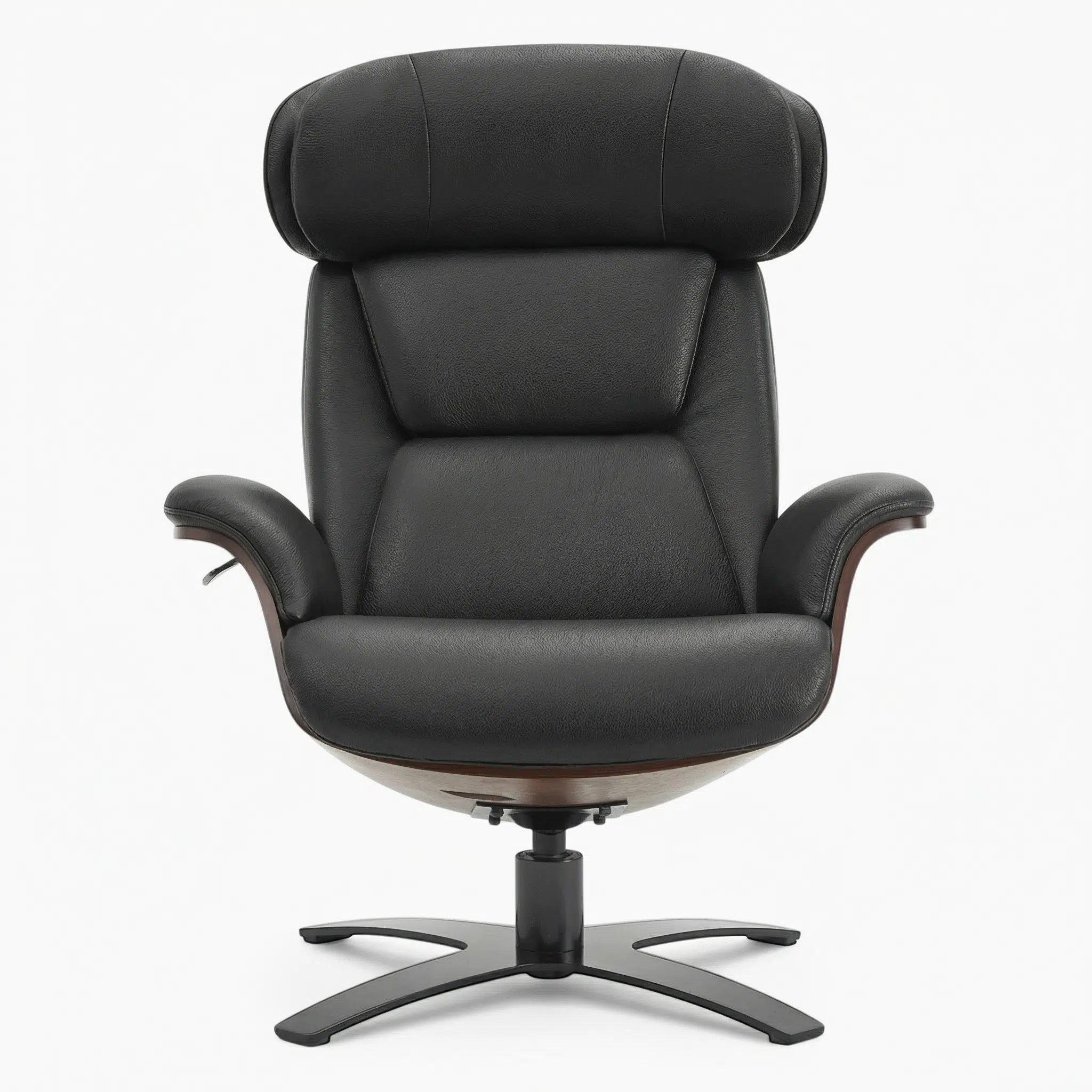 First time introduce in 1982, Rivenn Leather Recliner reflects the era’s shift toward modern European sophistication. It’s ergonomic, sculptural, and deeply comfortable. Structurally crafted from genuine American wood and solid metal, it’s upholstered in 100% premium aniline leather that grows richer with time. High-density memory foam supports every contour, while the smooth swivel base and one-touch recline move effortlessly with you. Paired with its matching ottoman, it remains a timeless expression of comfort and craftsmanship.