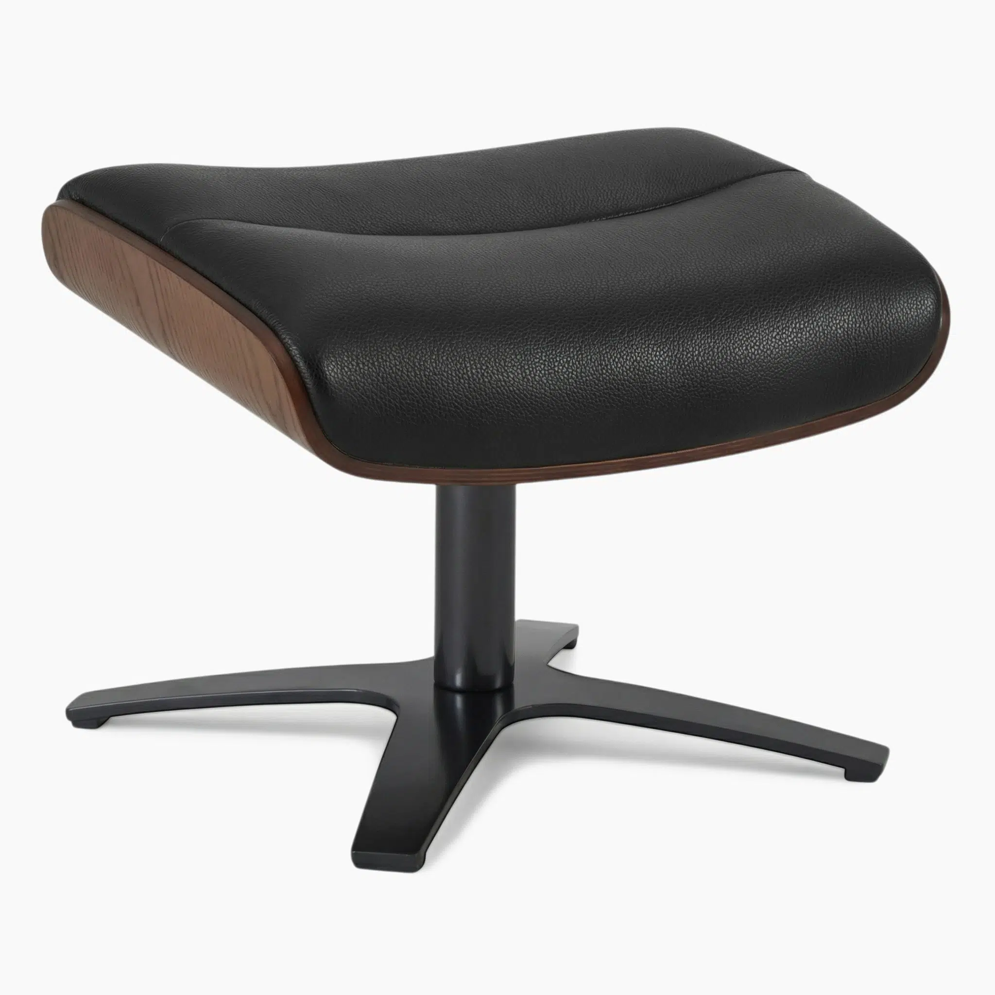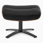 The chair and ottoman are made with aniline leather, solid metal, and American wood. The base is made from plywood with an ash veneer.