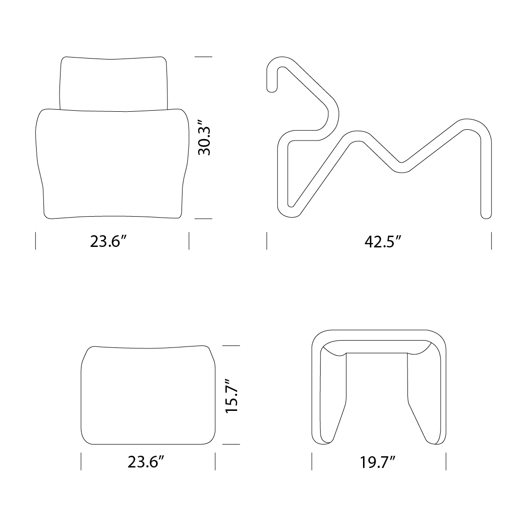 Ottoman: 23.6 W x 19.7 D x 18.9 H inches |