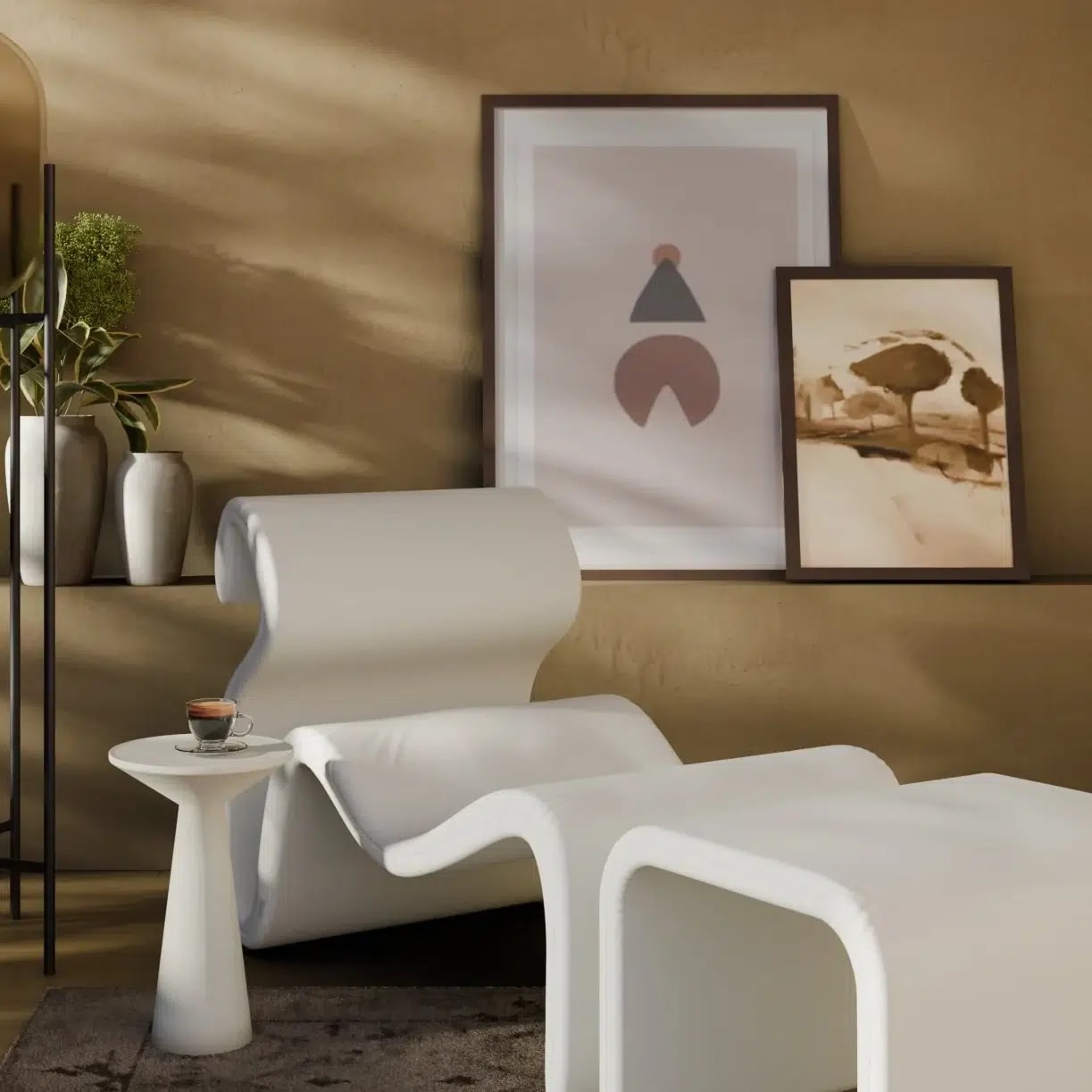 Its silhouette feels like a cloud, but its presence is bold. A playful nod to the 1970s, reimagined for now. The kind of chair that doesn`t just complete a room—it invites you to live in it.