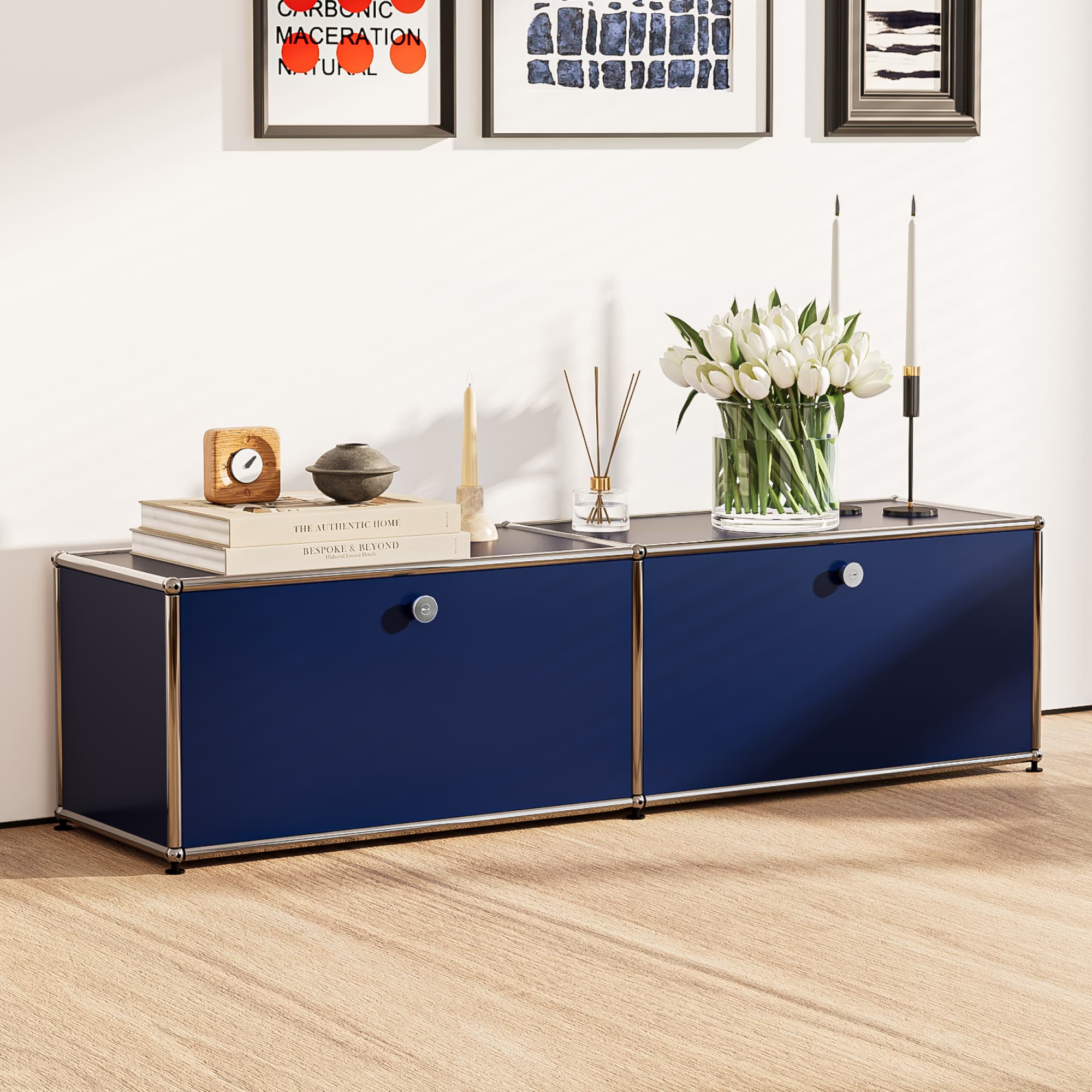 Rooted in the precision and clarity of 1960s Swiss design, the Haller Media B218 embodies the Bauhaus ideals of function and simplicity. Its chrome-plated steel frame, powder-coated panels, and modular structure offer enduring strength and versatility. Designed to adapt effortlessly over time, it serves as a timeless media console that blends architectural form with everyday practicality.