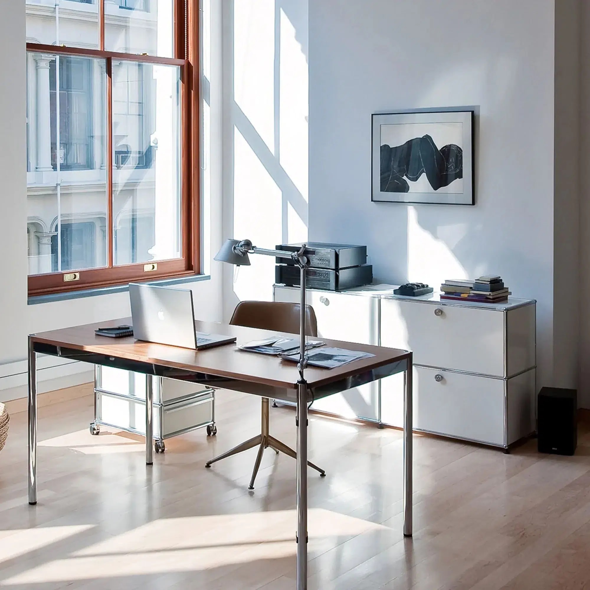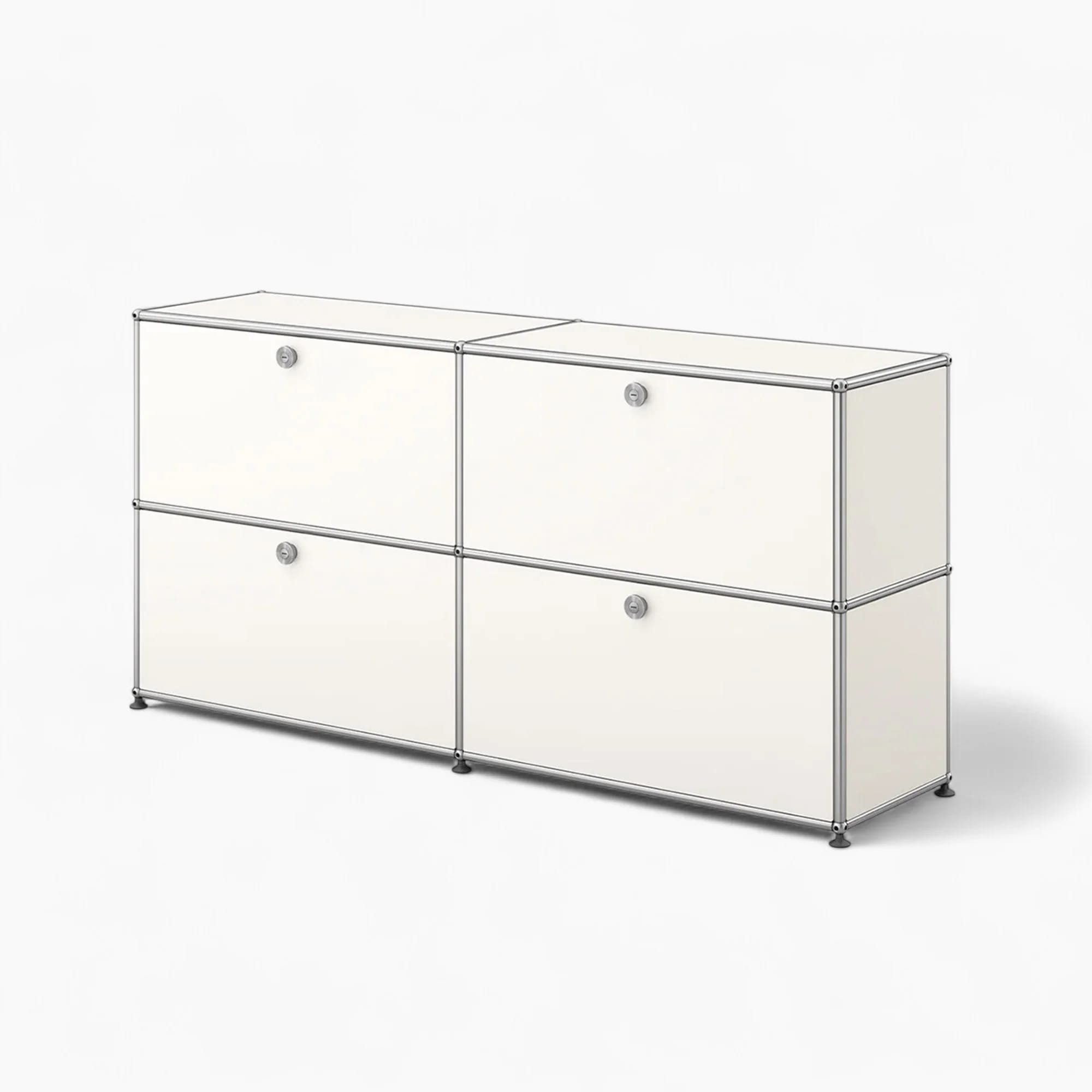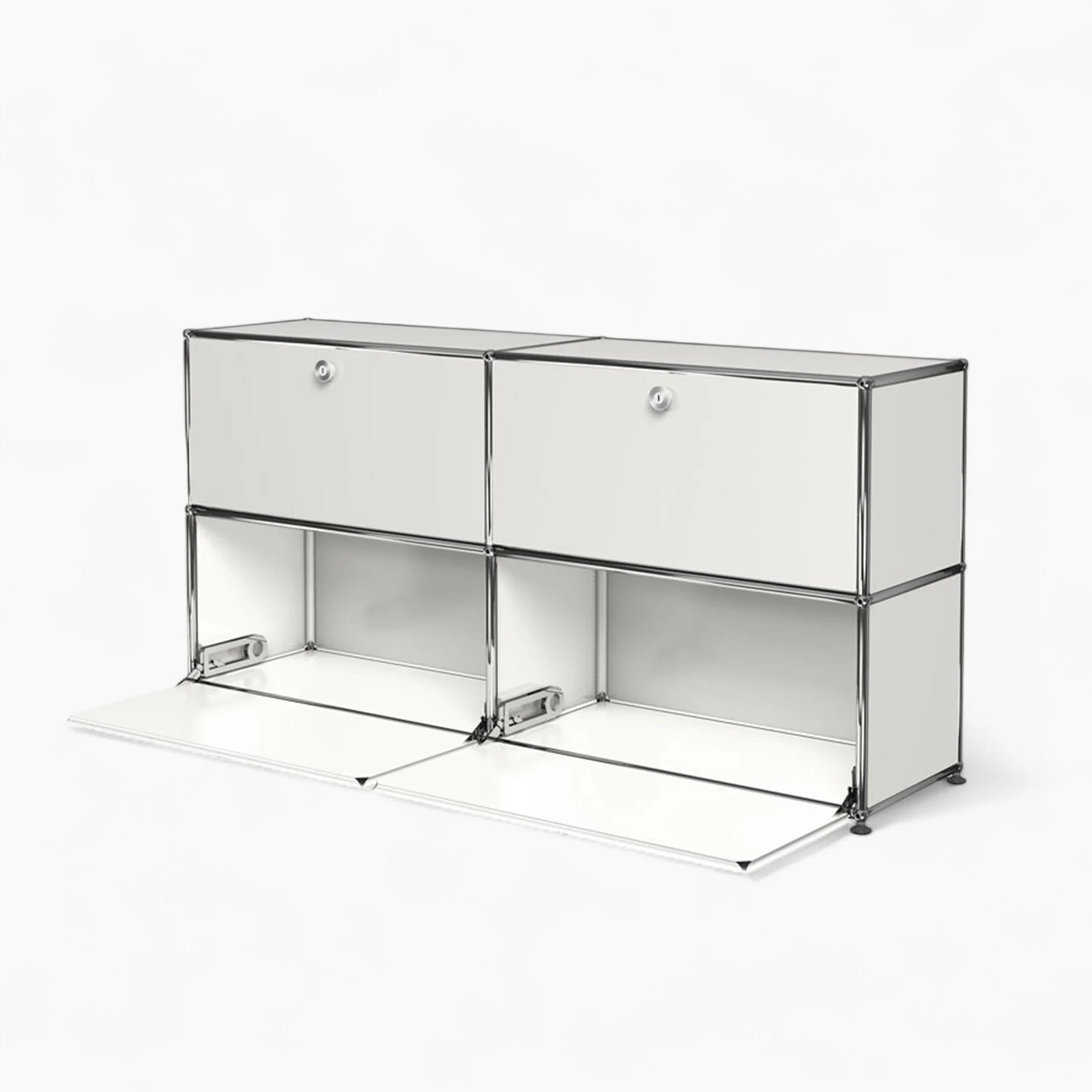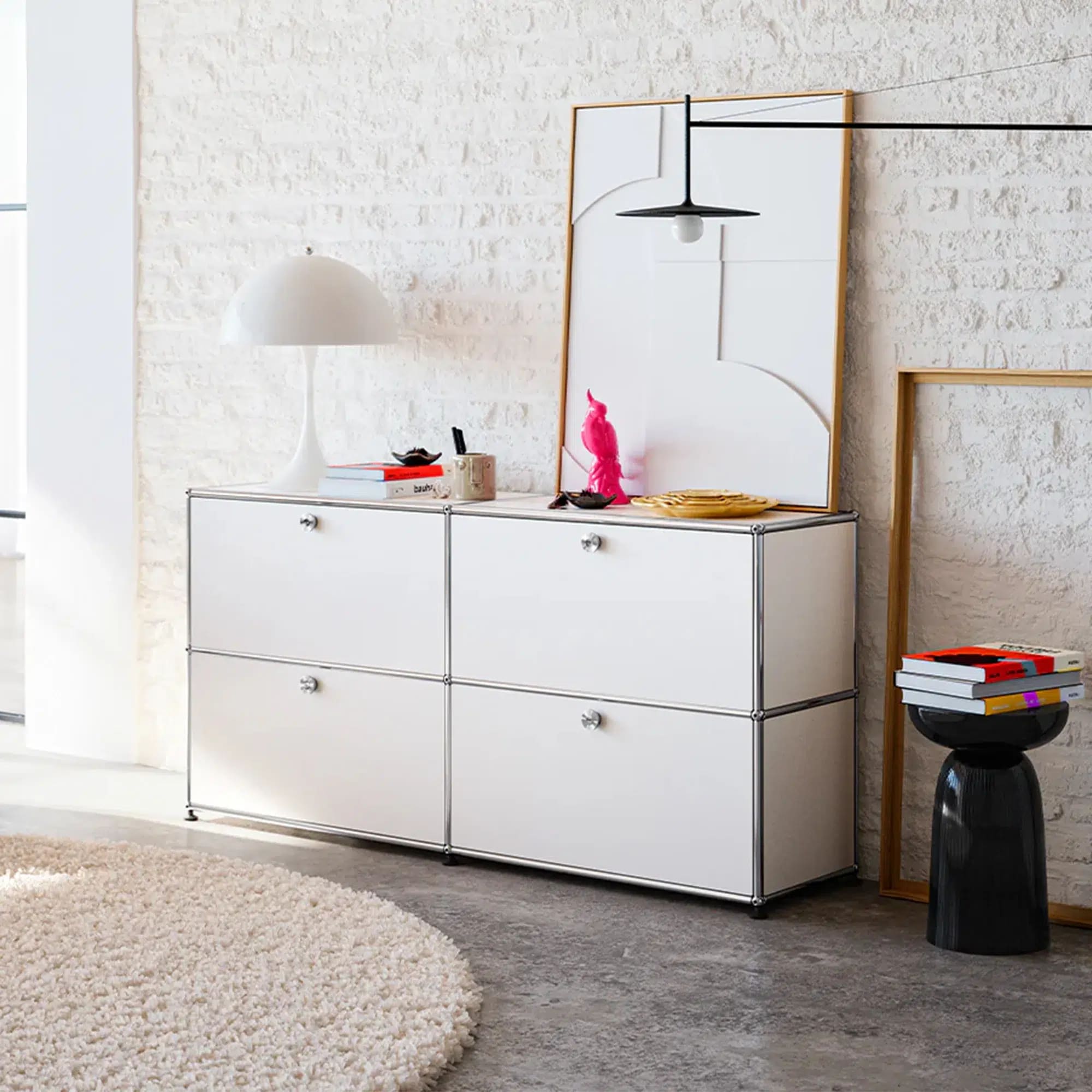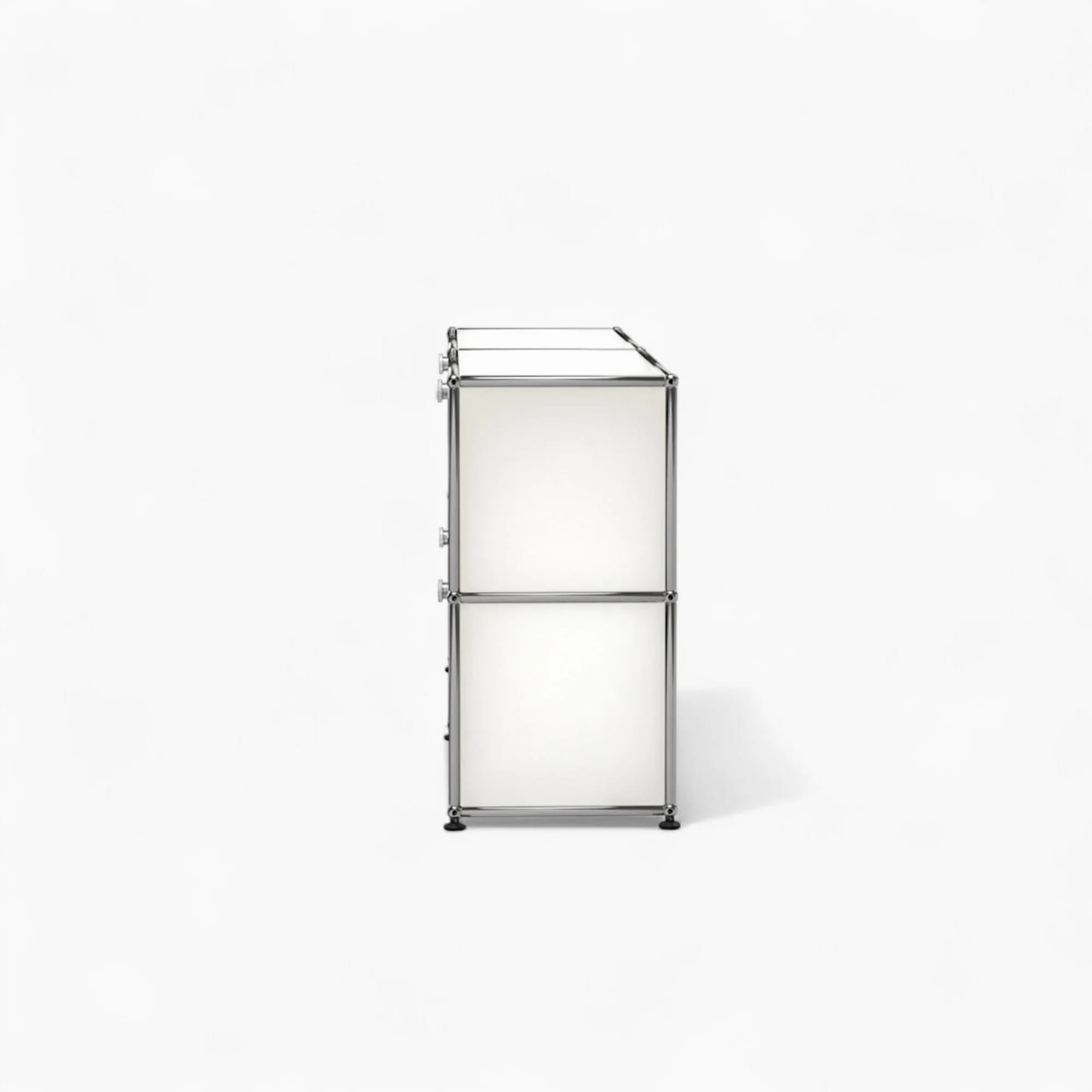 Rooted in the precision and clarity of 1960s Swiss design, the Haller Sideboard E2 embodies the Bauhaus ideals of function and simplicity. Its chrome-plated steel frame, powder-coated panels, and modular structure offer enduring strength and versatility. Designed to adapt effortlessly over time, it serves as a timeless media console that blends architectural form with everyday practicality.