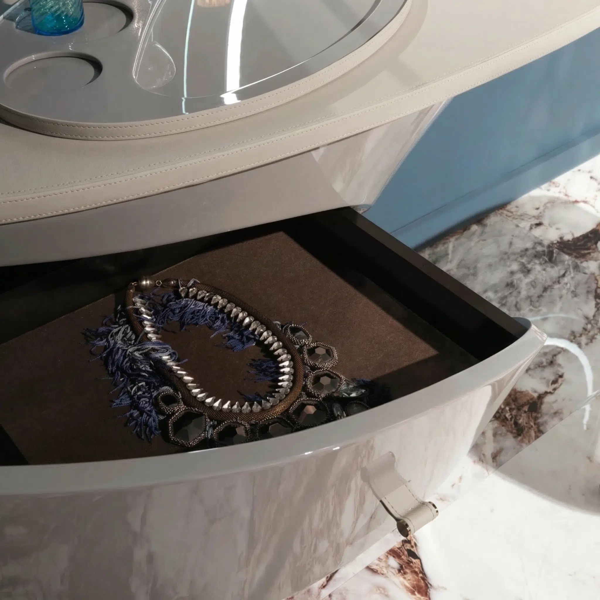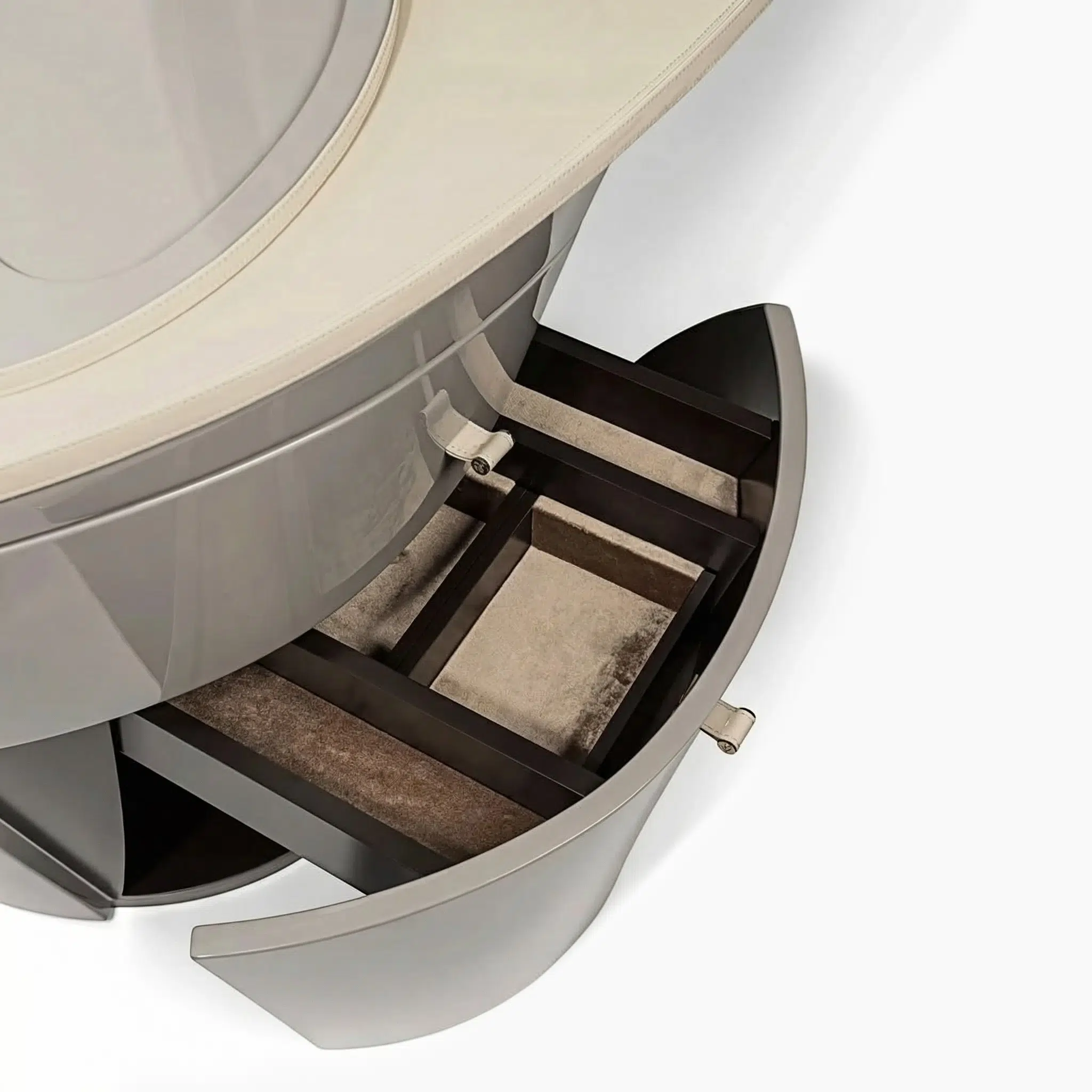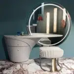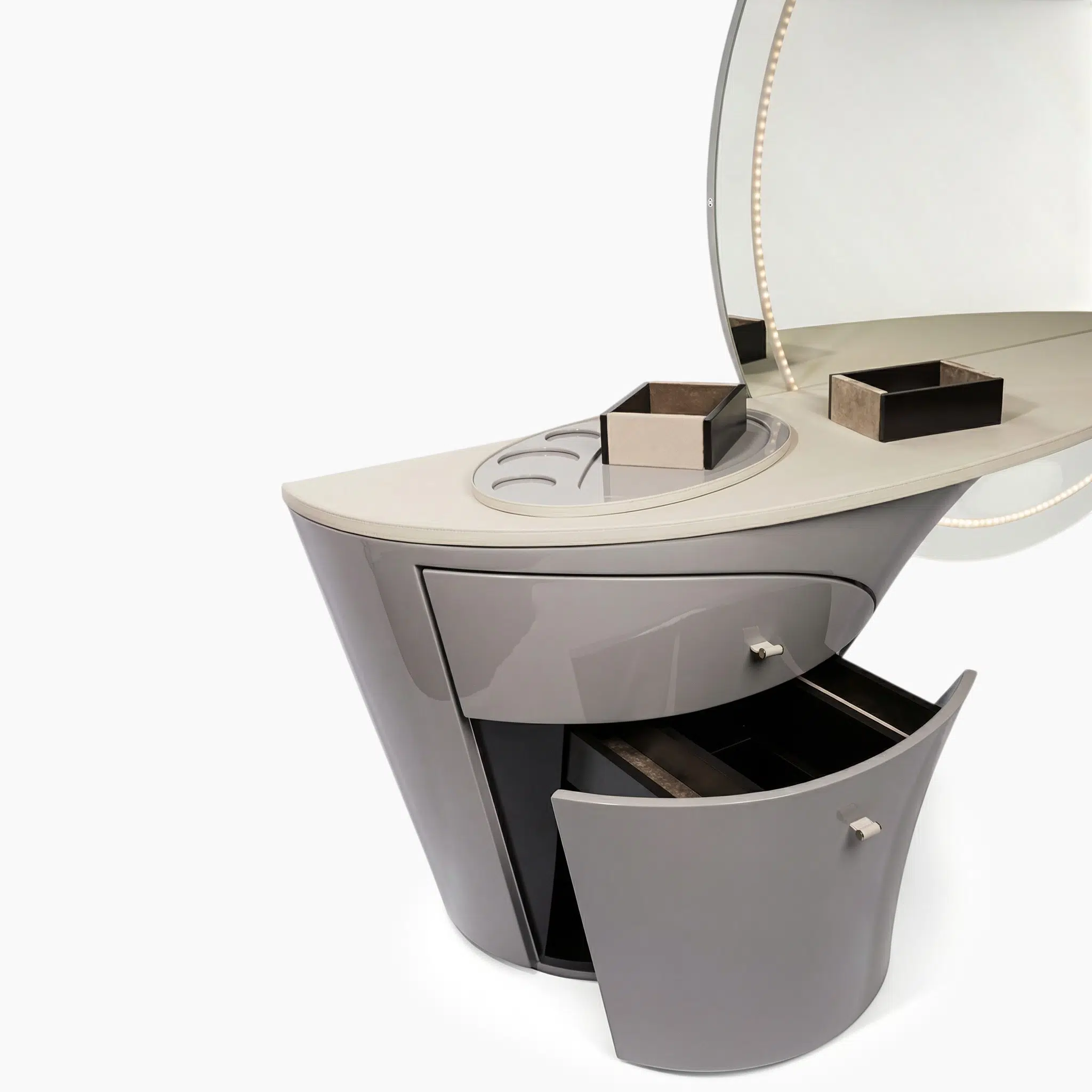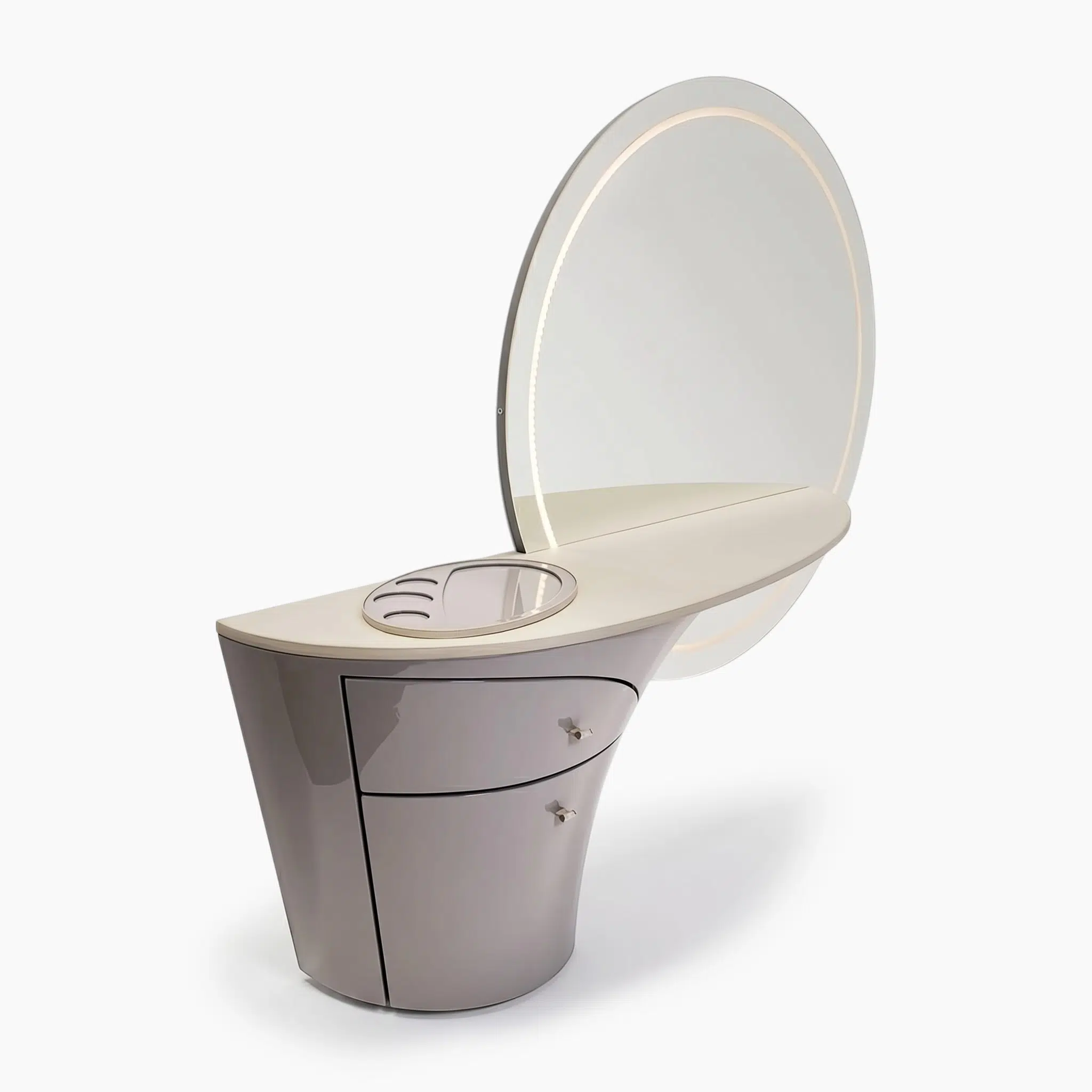 With its backlit round mirror, the Jet Plane Vanity Tables becomes more than storage. It contributes to balanced illumination for grooming while adding a contemporary visual centerpiece.