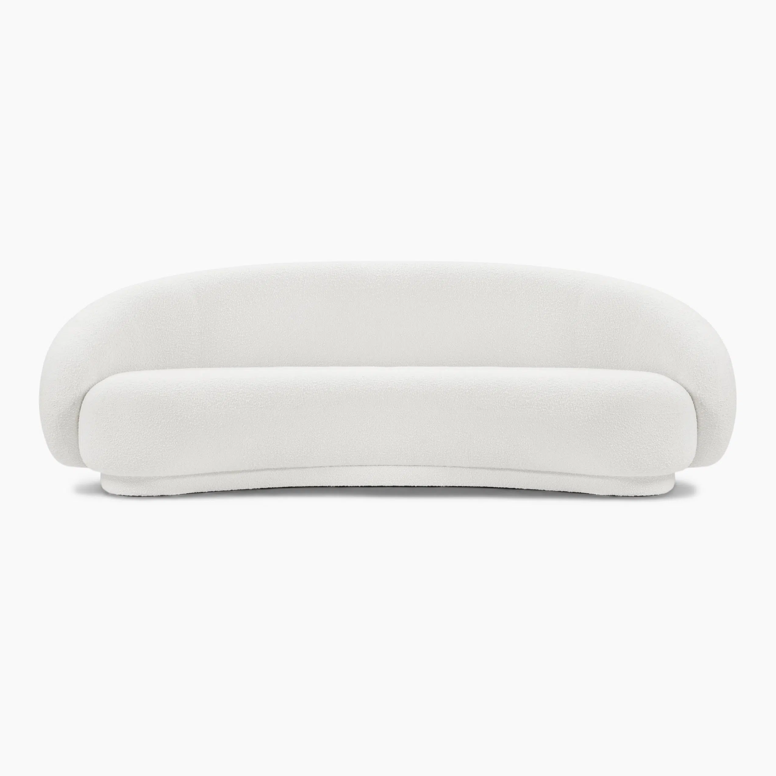 The low, rounded base anchors the silhouette with quiet strength, giving the sofa a floating appearance that combines balance, stability, and grace.