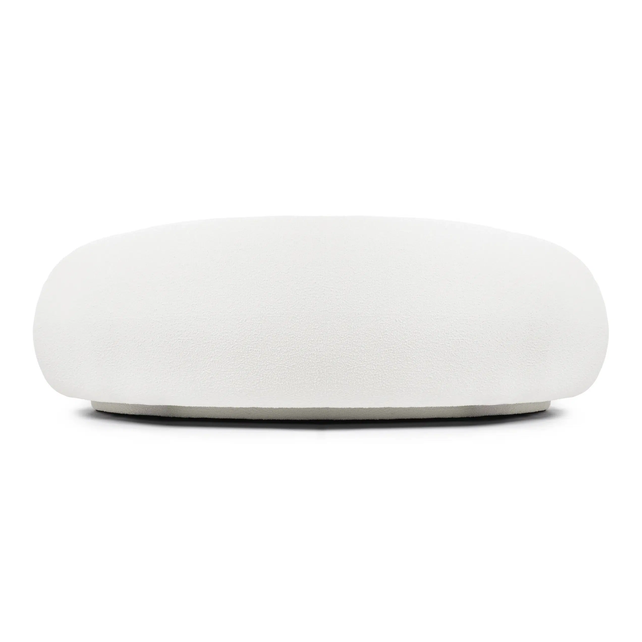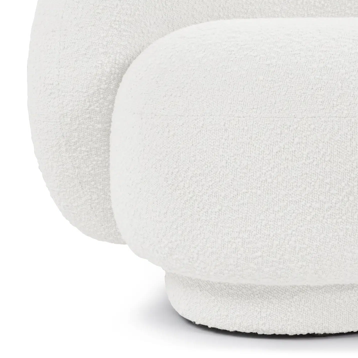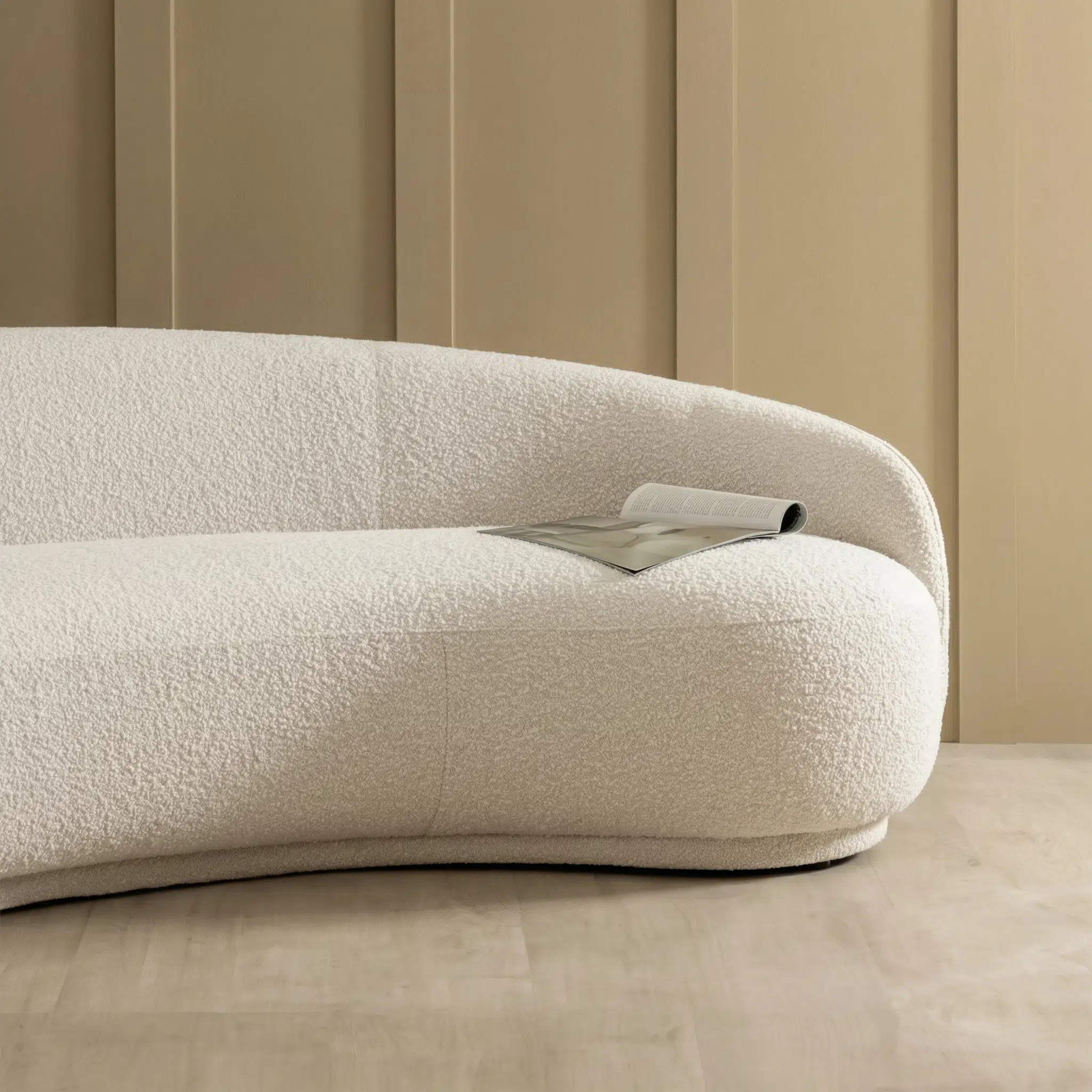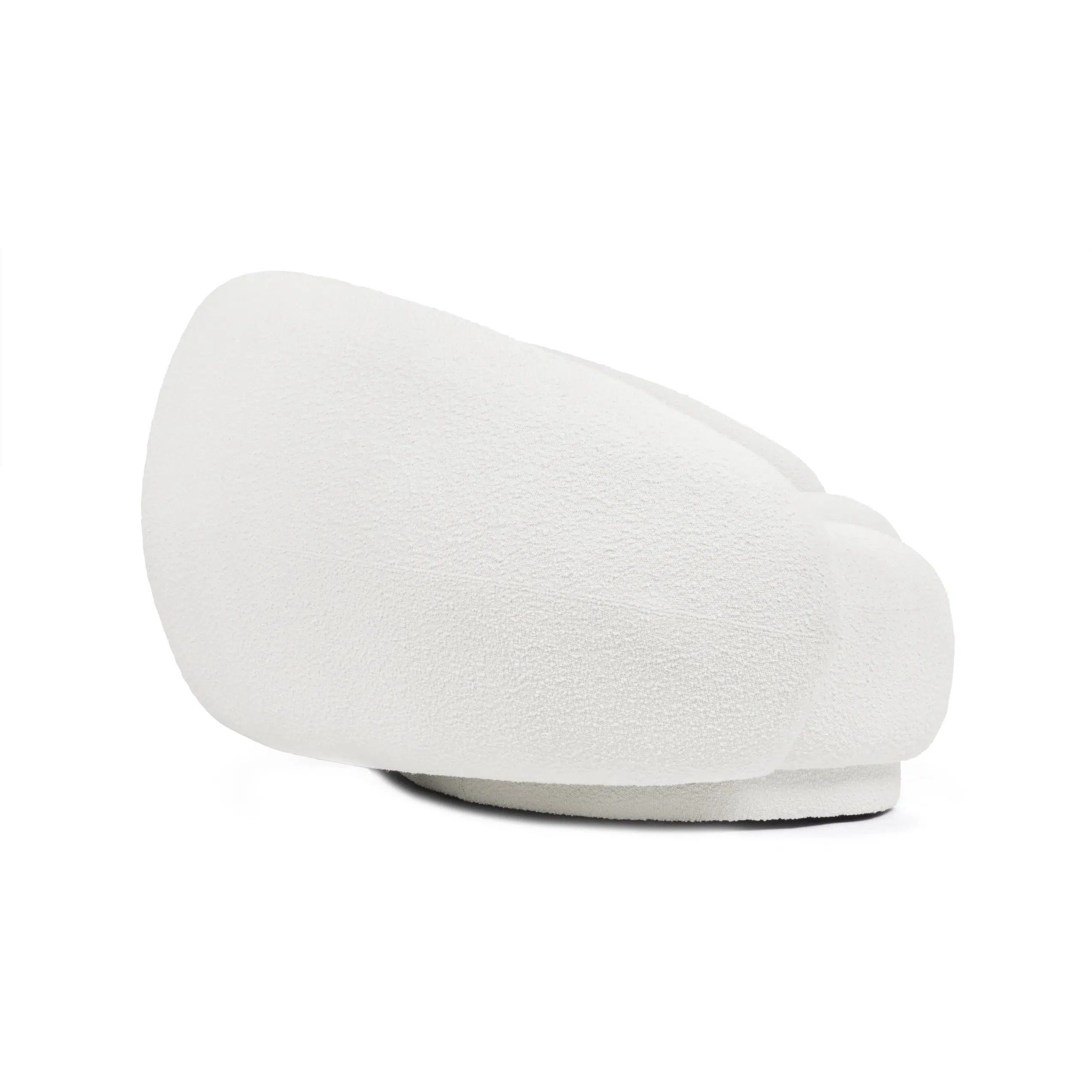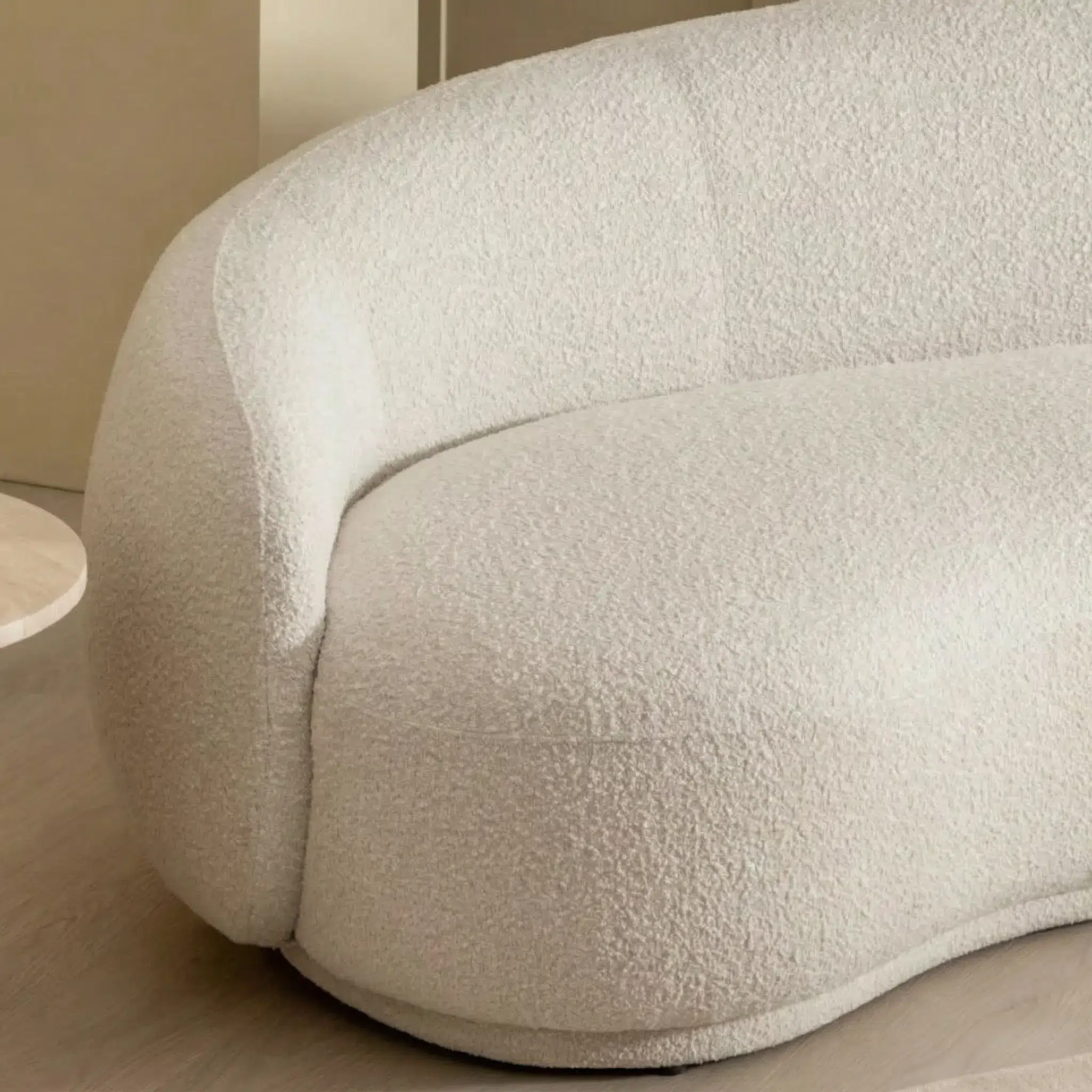 Crafted with rich bouclé fabric, the surface offers a tactile softness that enhances both comfort and sophistication, lending warmth to contemporary interiors.