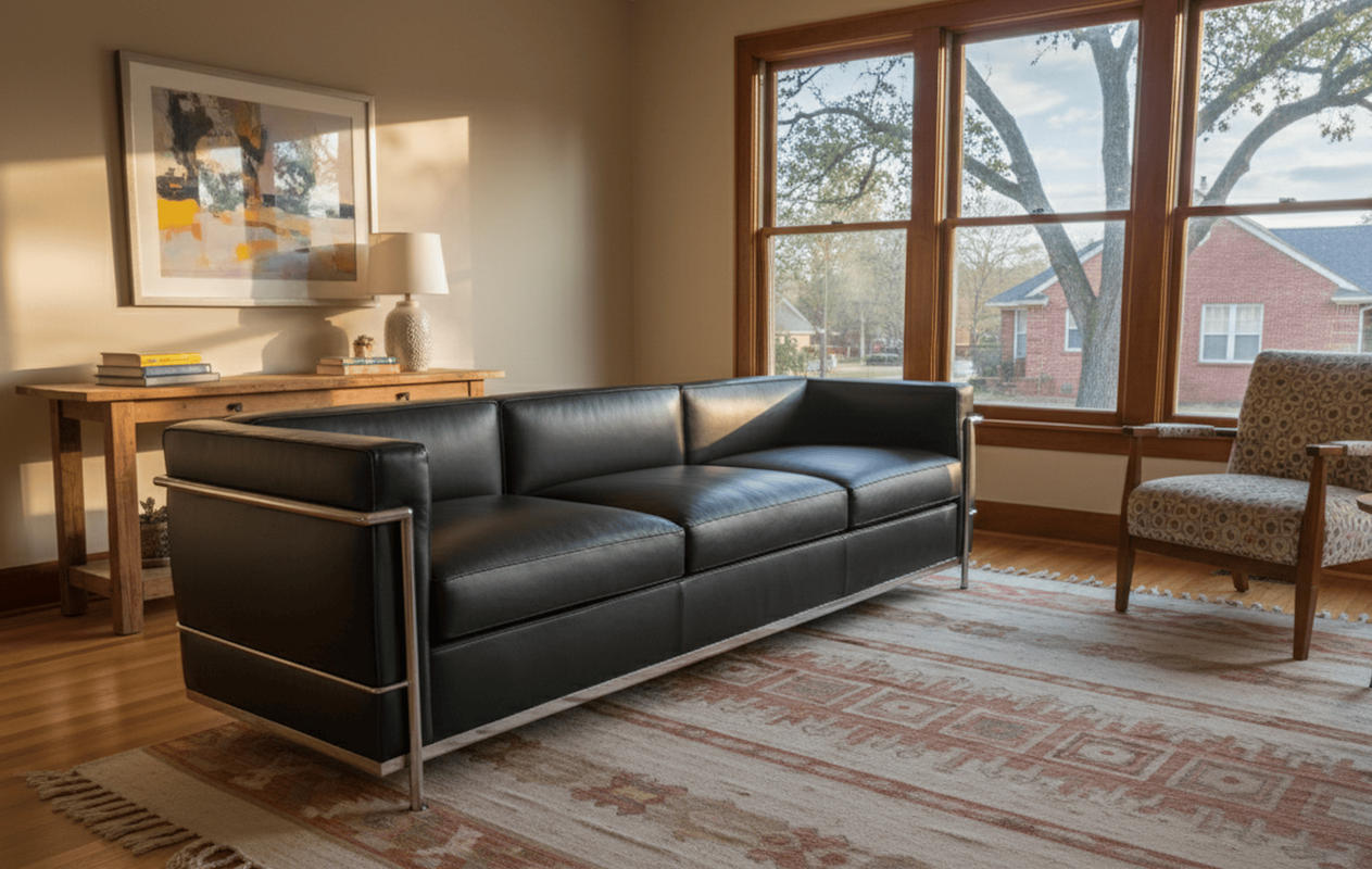 Created during the modernist revolution of 1928, the LC2 Sofa captures the perfect balance between structure and softness. Its tubular steel frame outlines a precise architectural form that holds deep, inviting cushions. Often called a “cushion basket” for its unique design, it remains a celebrated icon of beauty, comfort, and refined modernity.
