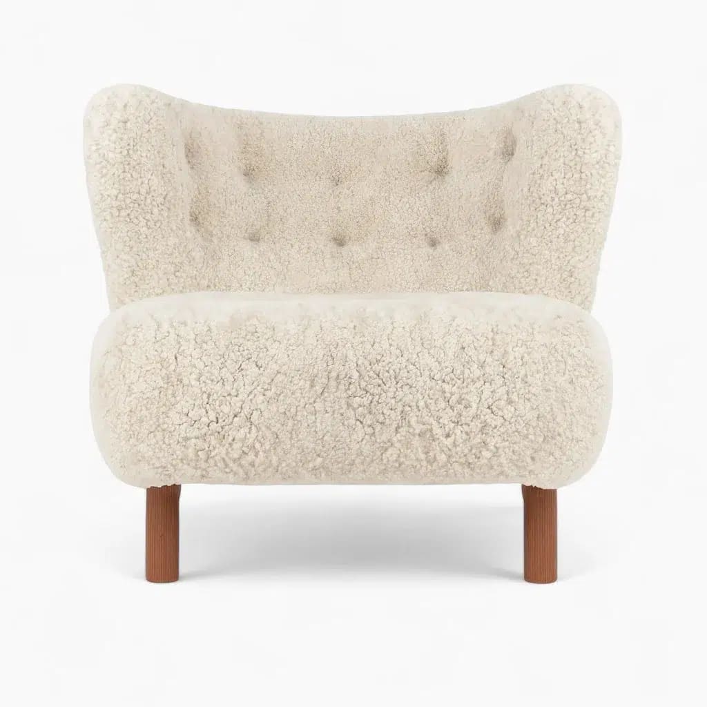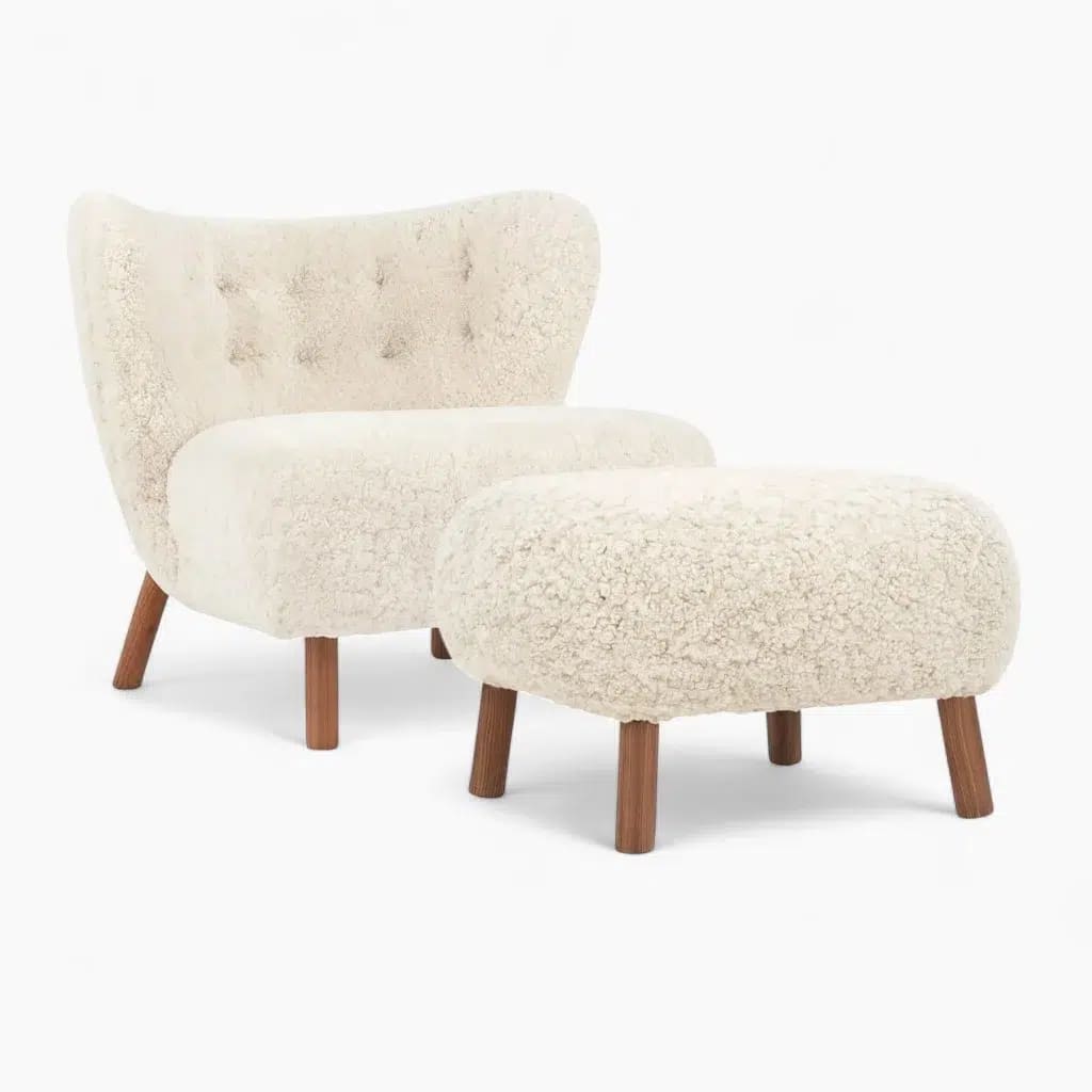 First introduced in 1938, the Little Petra Lounge Chair revives the cozy spirit of the “funkis” era, a movement defined by soft lines and human-centered design. It became distinguished for its inviting curves and compact form that fits beautifully in any space. This reimagined version stays true to that warmth, featuring plush sheepskin upholstery that wraps you in comfort, solid walnut-finished legs with felt gliders, and ergonomic contours designed for effortless relaxation. A truly timeless blend of Scandinavian charm and everyday bliss.