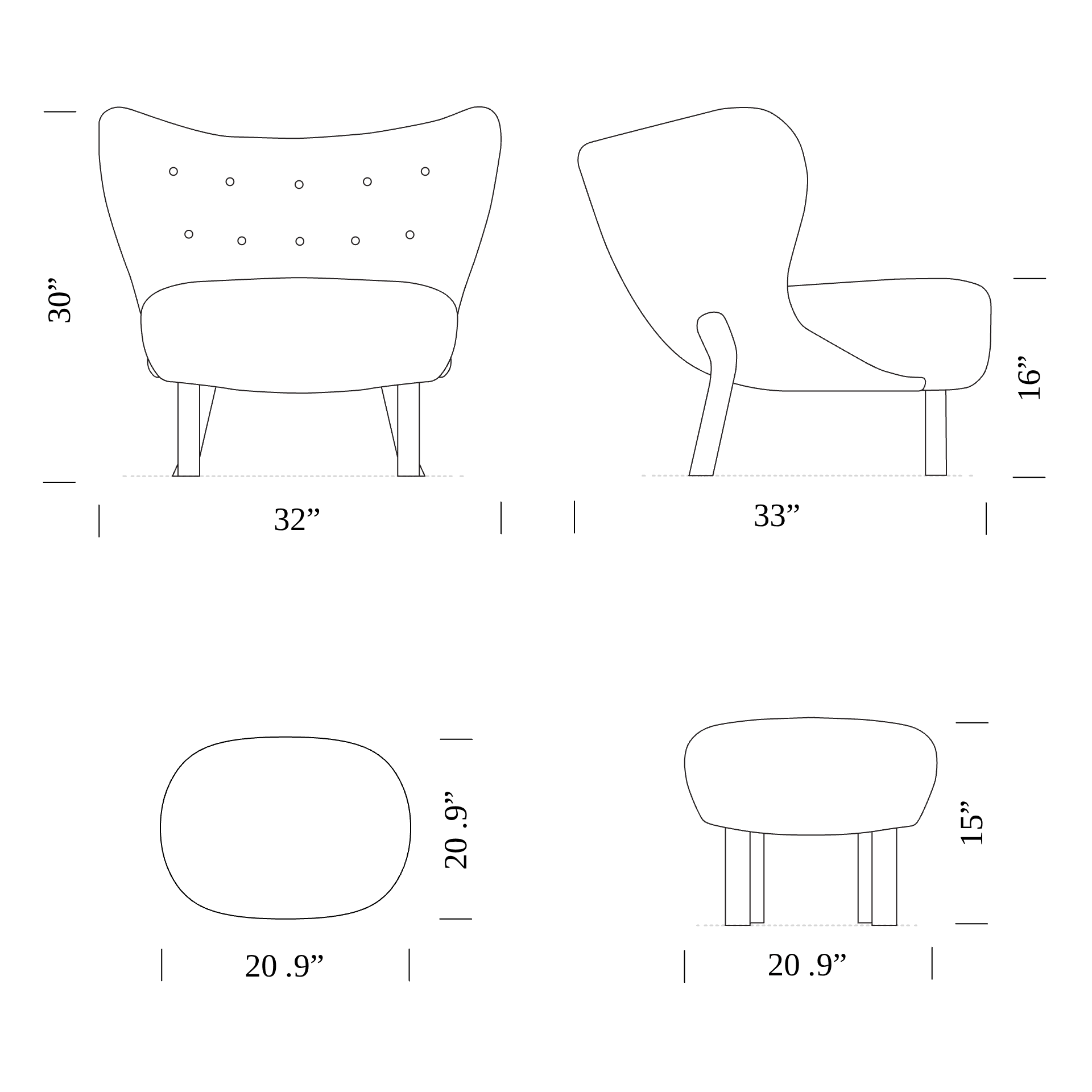 Ottoman: 20.9 W x 20.9 D x 15 H inches |