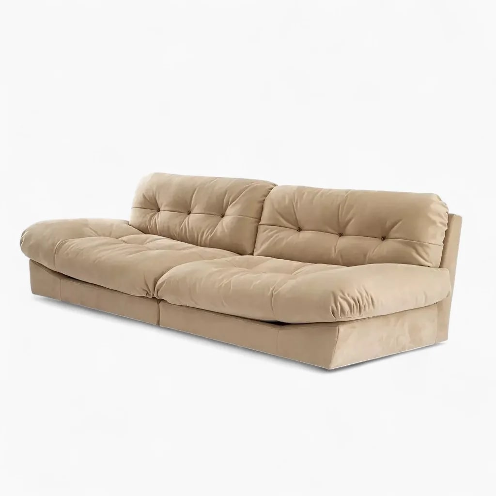 Born from the bold spirit of late-1980s Italian design, the Milano Sofa captures the perfect balance of geometry, comfort, and effortless style. Its low, armless silhouette and deep, tufted cushions create a relaxed yet refined presence, while sumptuous velvet upholstery adds a touch of modern luxury. Crafted with precision and built to last, it offers inviting comfort and sculptural elegance that elevate any contemporary living space.