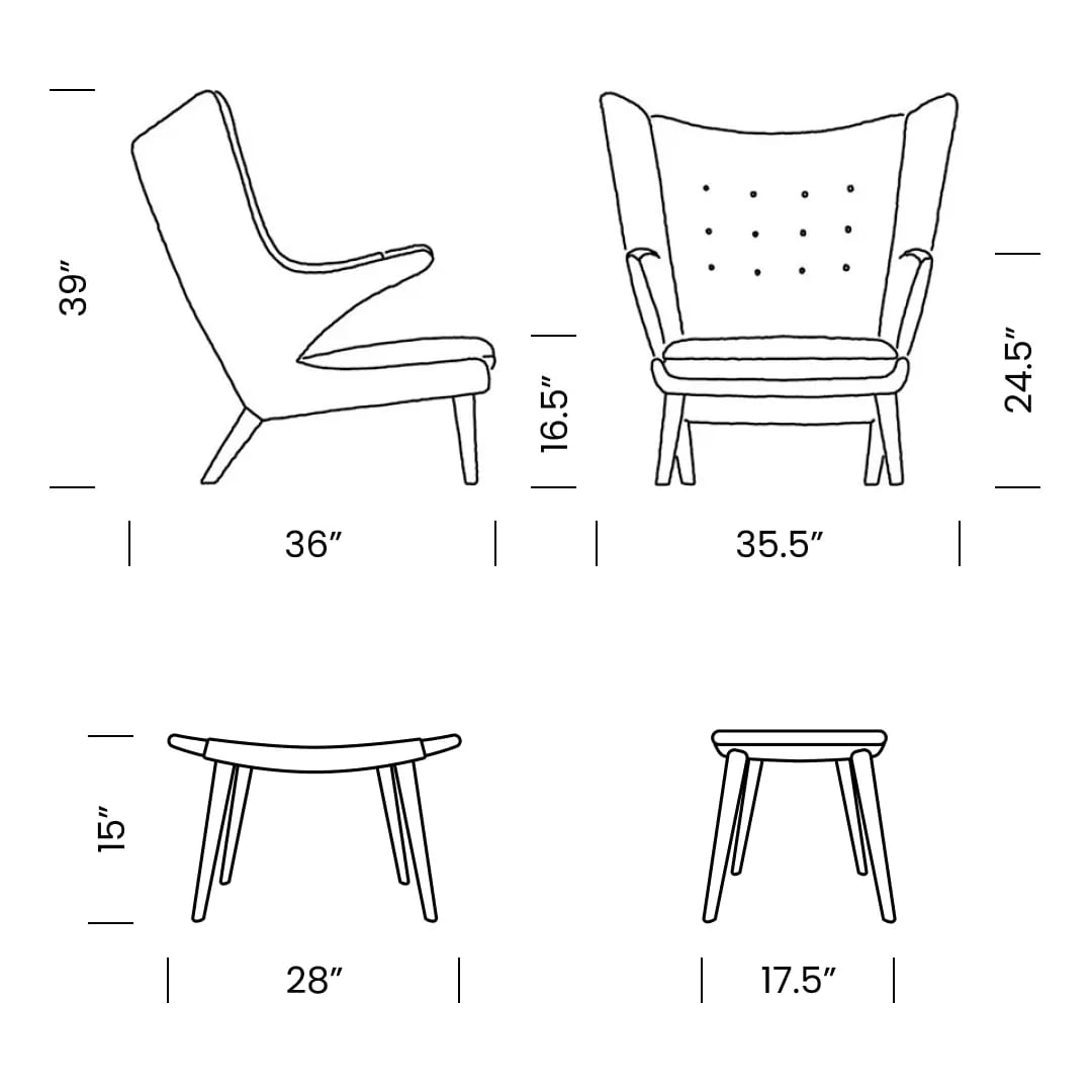 Ottoman: 28 W x 17.5 D x 15 H inches |