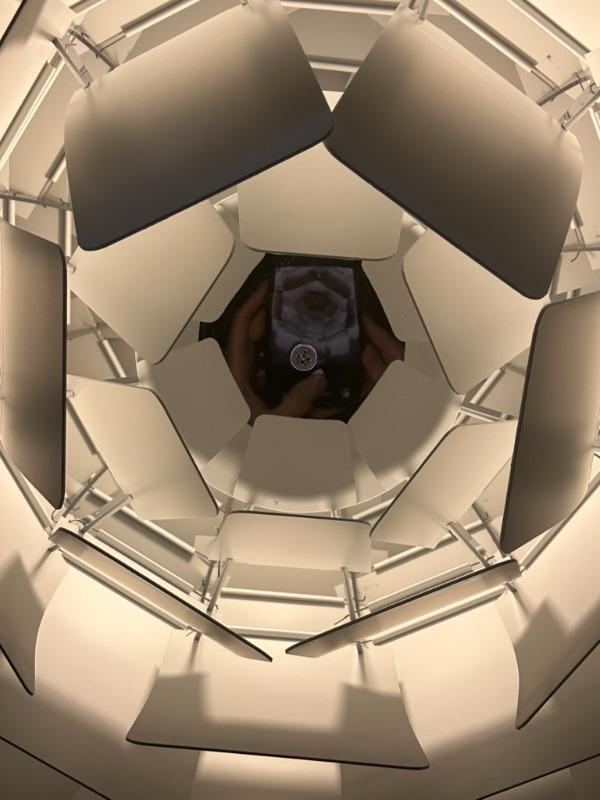 Layered aluminum leaves open and close to create both soft ambient and focused direct light. Adaptable for any mood or task, this design ensures glare-free comfort and a distinctive, dynamic presence.