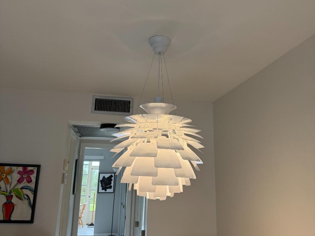 Emerging from the late 1950s era of innovation, the Poul Artichoke Lamp captures the spirit of modern design with its sculptural layers and flawless illumination. Composed of overlapping metal “leaves,” it diffuses light evenly, eliminating glare while casting a soft, inviting glow. Both architectural and organic, it stands as a striking centerpiece that enhances any space with warmth, elegance, and timeless sophistication.