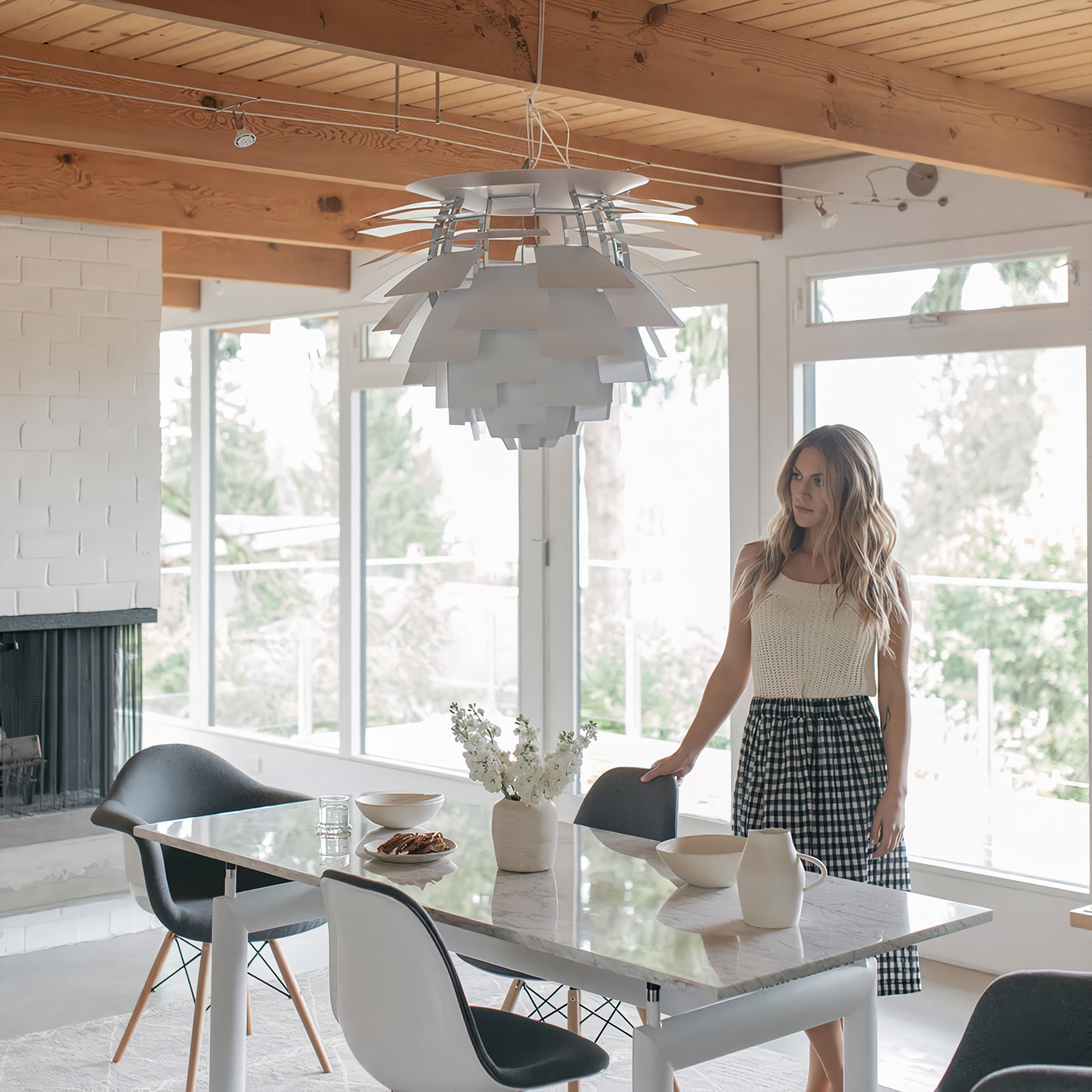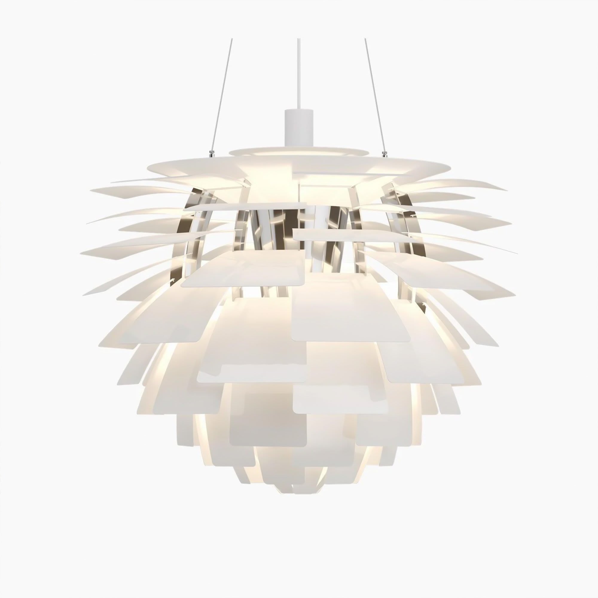 Emerging from the late 1950s era of innovation, the Poul Artichoke Lamp captures the spirit of modern design with its sculptural layers and flawless illumination. Composed of overlapping metal “leaves,” it diffuses light evenly, eliminating glare while casting a soft, inviting glow. Both architectural and organic, it stands as a striking centerpiece that enhances any space with warmth, elegance, and timeless sophistication.