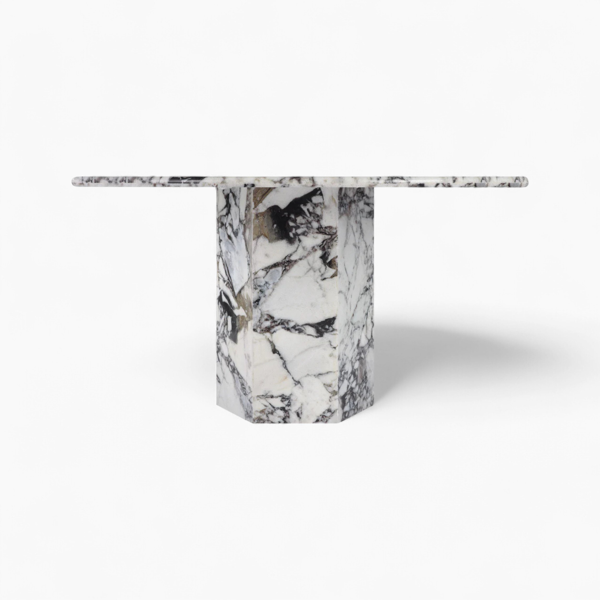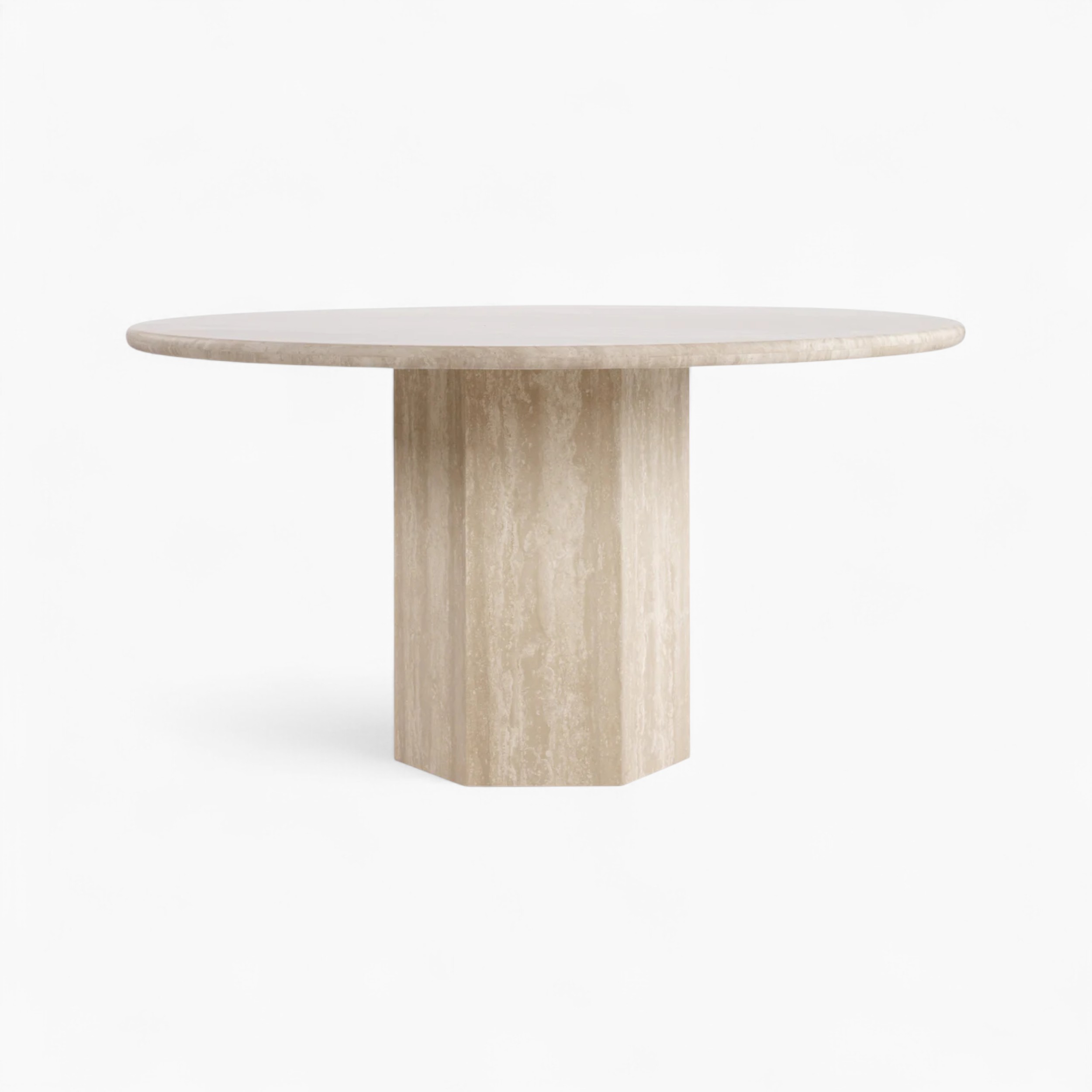Reinterprets classical Roman design through a modern, contemporary lens. A honed Italian travertine top sits on a solid, angular plinth base, creating a harmonious balance between strength and simplicity. Its clean geometry highlights the beauty of natural stone, ensuring every piece feels distinct. Designed for everyday use and refined gatherings, the Saga Table brings timeless sophistication to contemporary interiors. |
