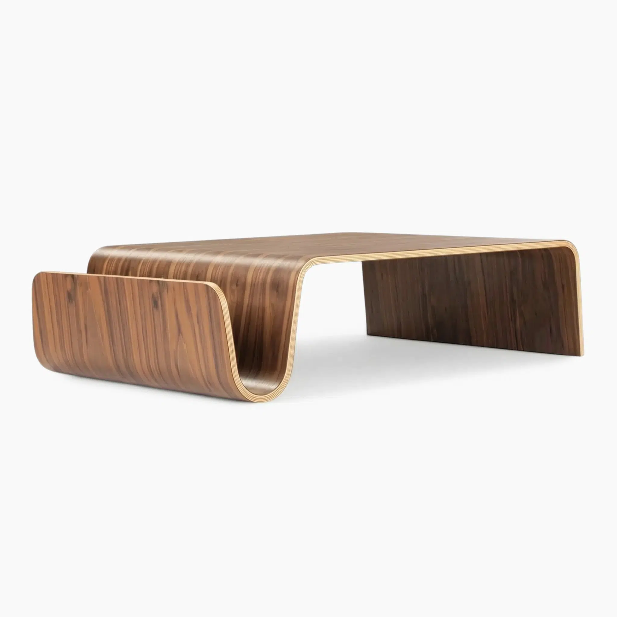 The signature wave form doubles as a clever storage nook for books and magazines, while its low 32 cm profile makes it instantly recognizable to design enthusiasts and collectors alike. Natural walnut veneer, FAS-grade quality.