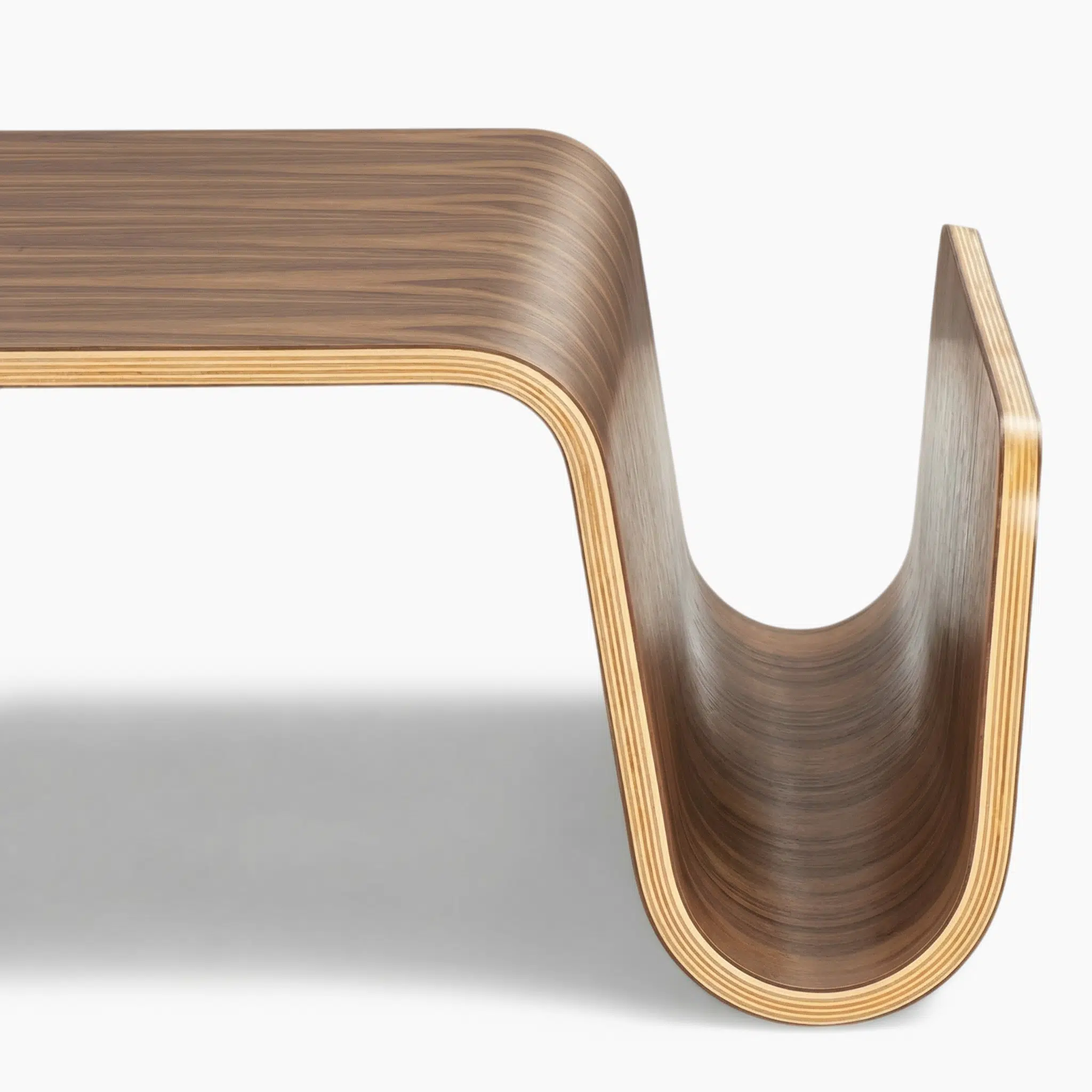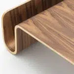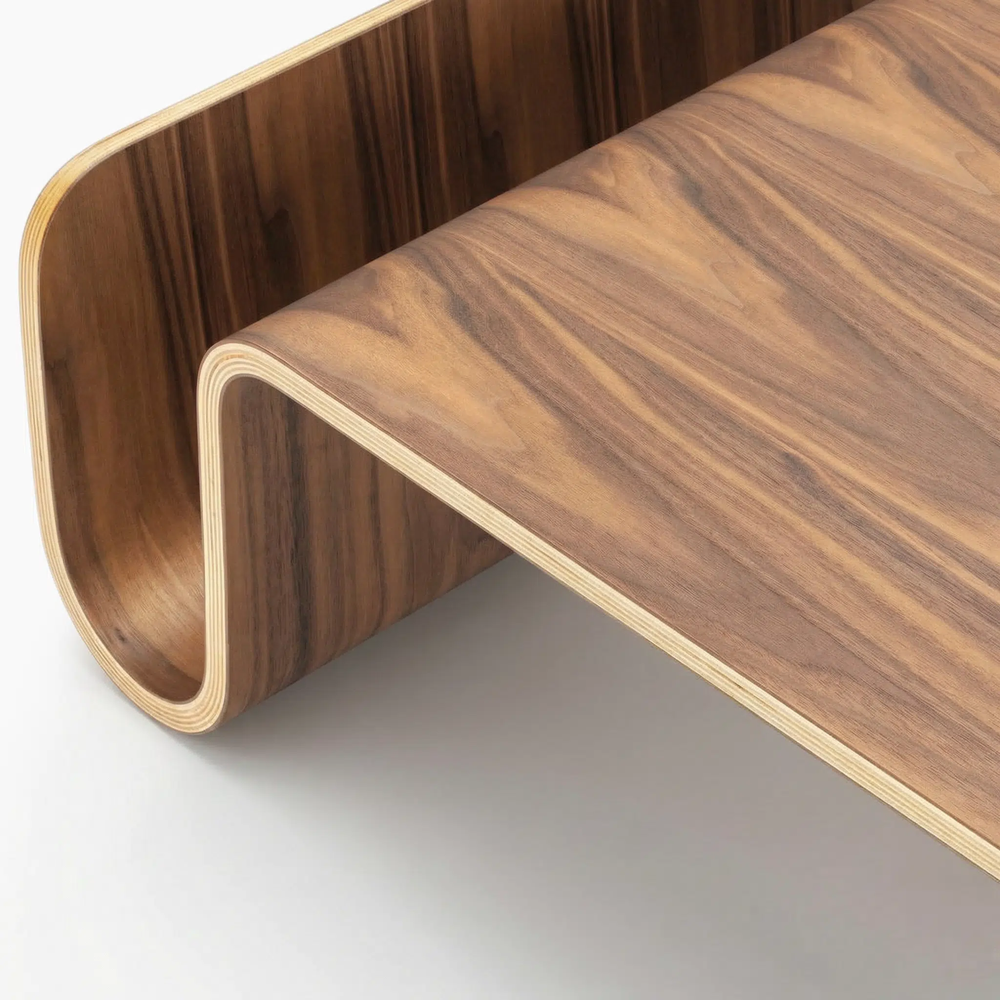 The Scando Table is made from 7-layer molded plywood with a natural walnut veneer. The surface is sealed with an eco-friendly lacquer finish for protection and easy maintenance.