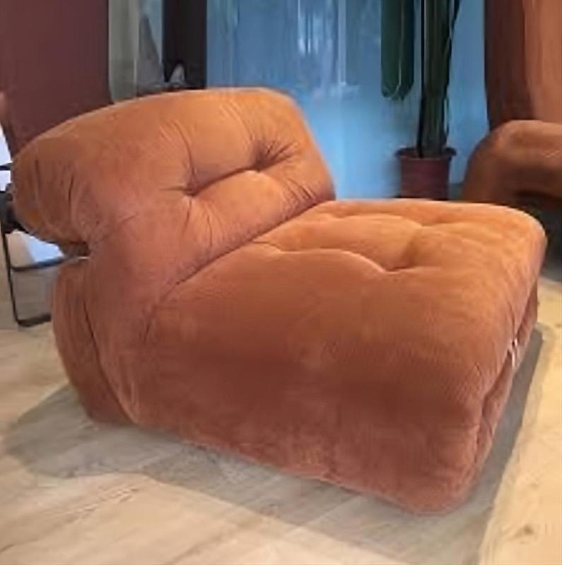 Born from the expressive spirit of 1970s Italian design, the Soriana Chair captures the era’s love for relaxed sophistication and sculptural form. Its voluminous cushions are elegantly gathered by a gleaming steel frame, creating a soft yet structured silhouette that exudes comfort and style. With its inviting contours and distinctive presence, this chair transforms any space into a statement of effortless luxury and modern charm.
