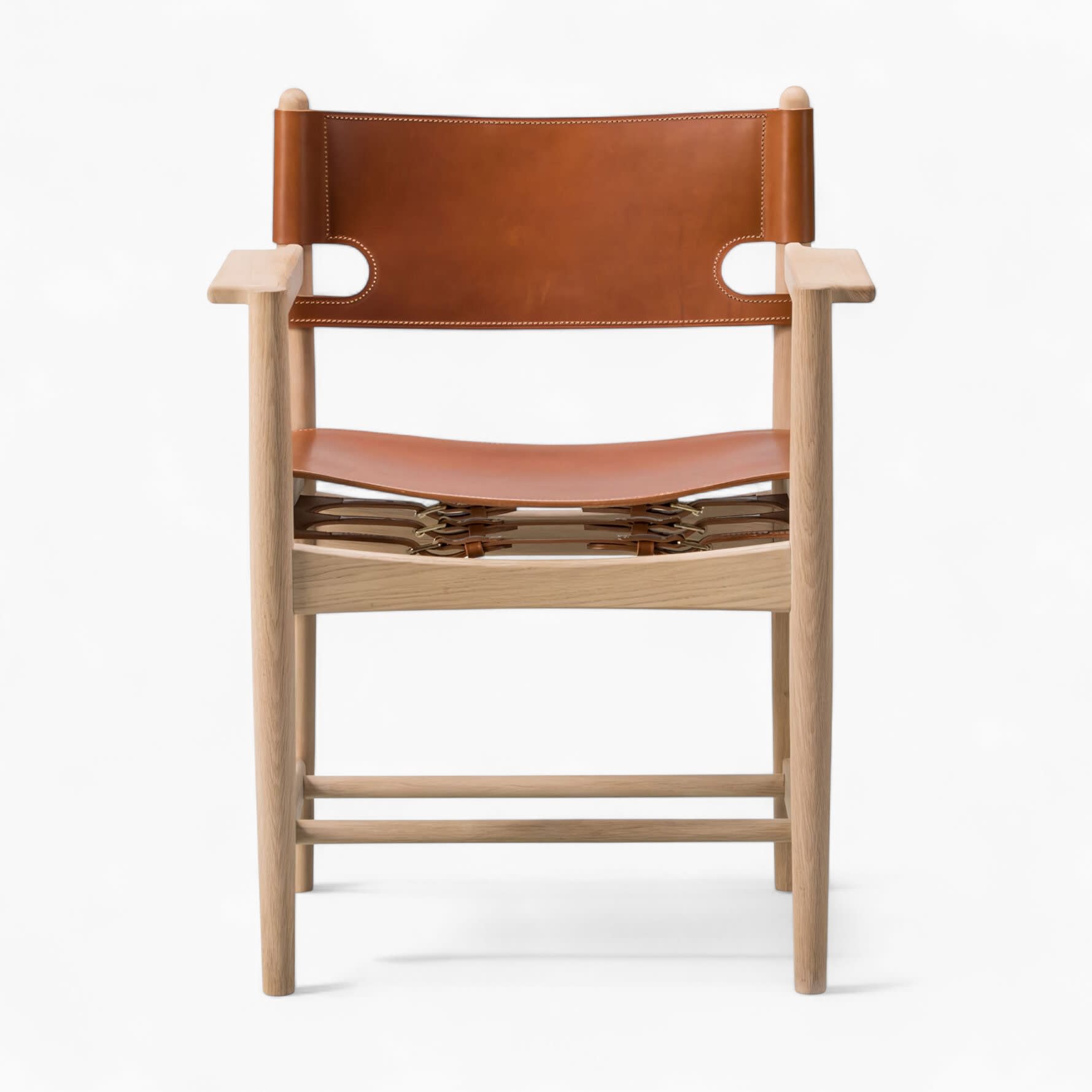 | The Spanish Armchair echoes a design that merged traditional Spanish furniture design with modern aesthetics in the 1958. This piece transcends trends and fits into any contemporary or classic decor. The eco oil-based stain treatment not only enhances the wood’s natural beauty but also ensures long-lasting durability. The absence of finger joints in the backrest and armrests highlights its superior craftsmanship. |