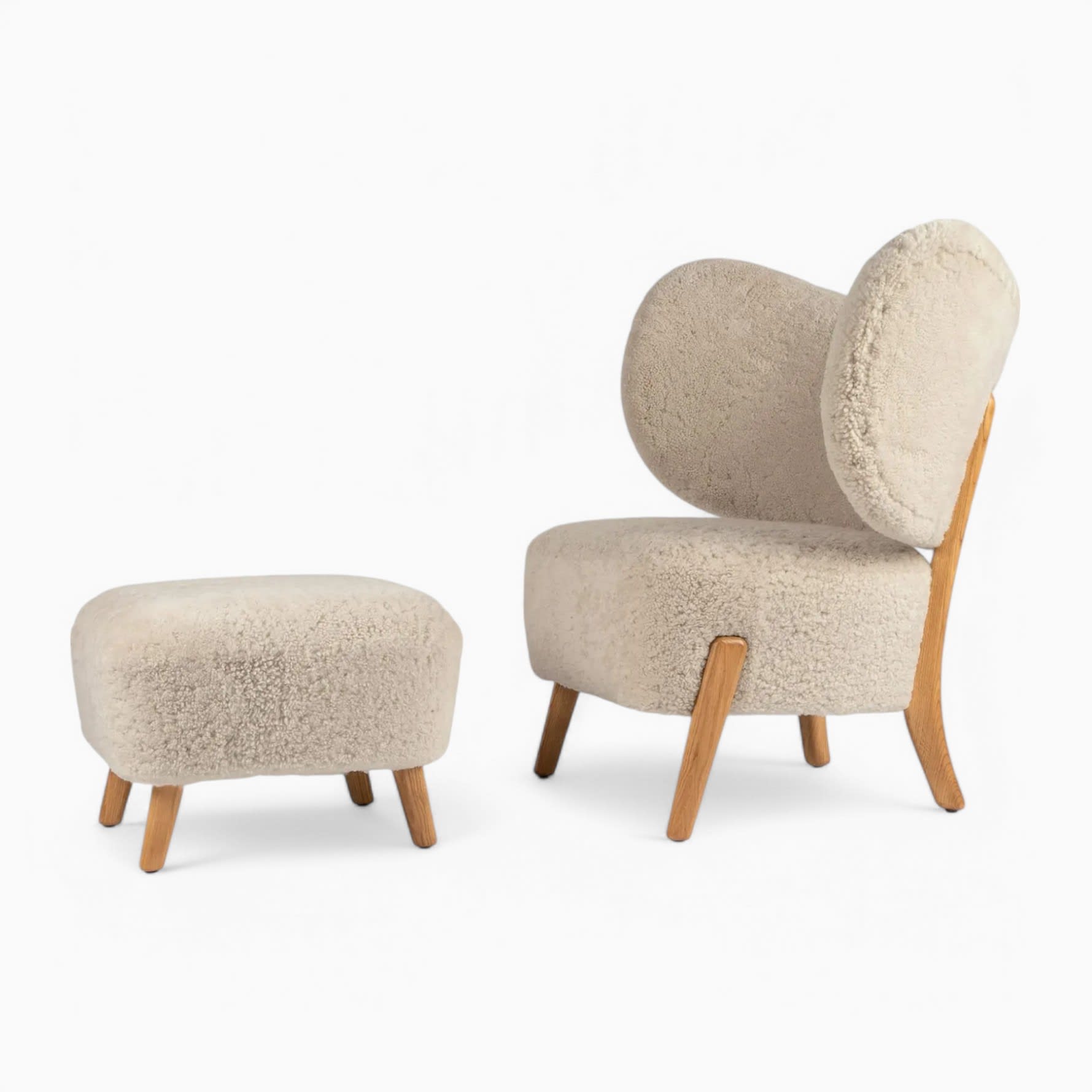 | TMBO Lounge Chair with Ottoman is created from the essence of the groundbreaking design that rose to popularity in 1935. Rooted in Japanese aesthetics, its clean lines and sculpted form create a harmonious blend of simplicity and elegance. Featuring luxurious sheepskin upholstery and an ergonomic design, it delivers unmatched comfort while elevating the ambiance of both modern and classic interiors. |