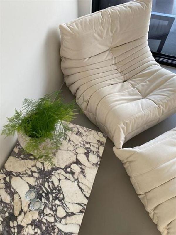 A design icon since 1973, the Togo is renowned for its exceptional comfort, low-slung profile, and ergonomic foam structure. Its handcrafted pleated sides add signature style and a sculptural presence, making every piece both striking and inviting.