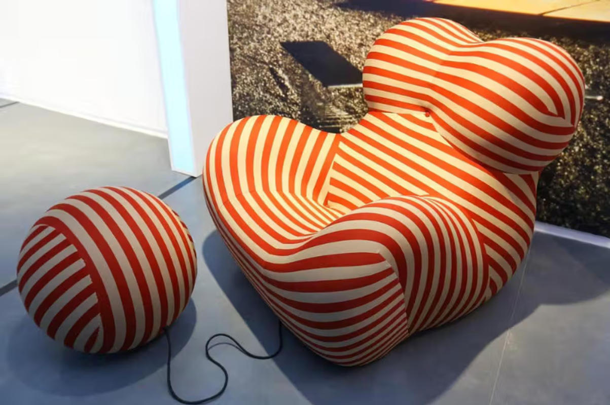 | The UP50 Chair and Ottoman reimagines 1969 Italian radical design with bold sculptural curves and anthropomorphic comfort. Winner of the XXVII Compasso d’Oro Award, UP50’s flexible foam form, striped upholstery, and iconic shape make it a true conversation piece and ergonomic sanctuary. |