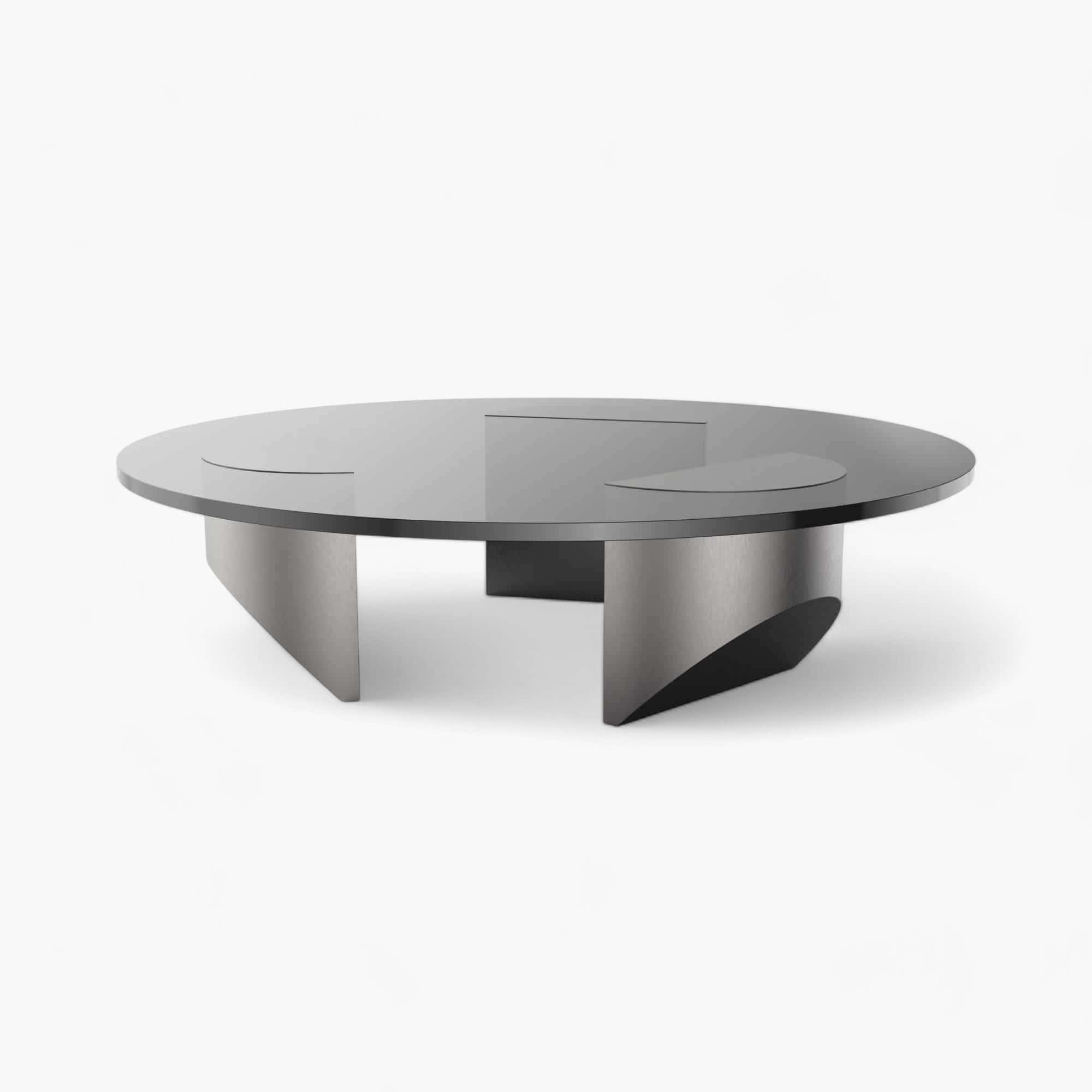 Brushed steel legs are precisely angled at 120° for maximum stability and architectural balance. Each leg anchors the table, ensuring long-term durability while maintaining the table’s polished, gallery-quality look.