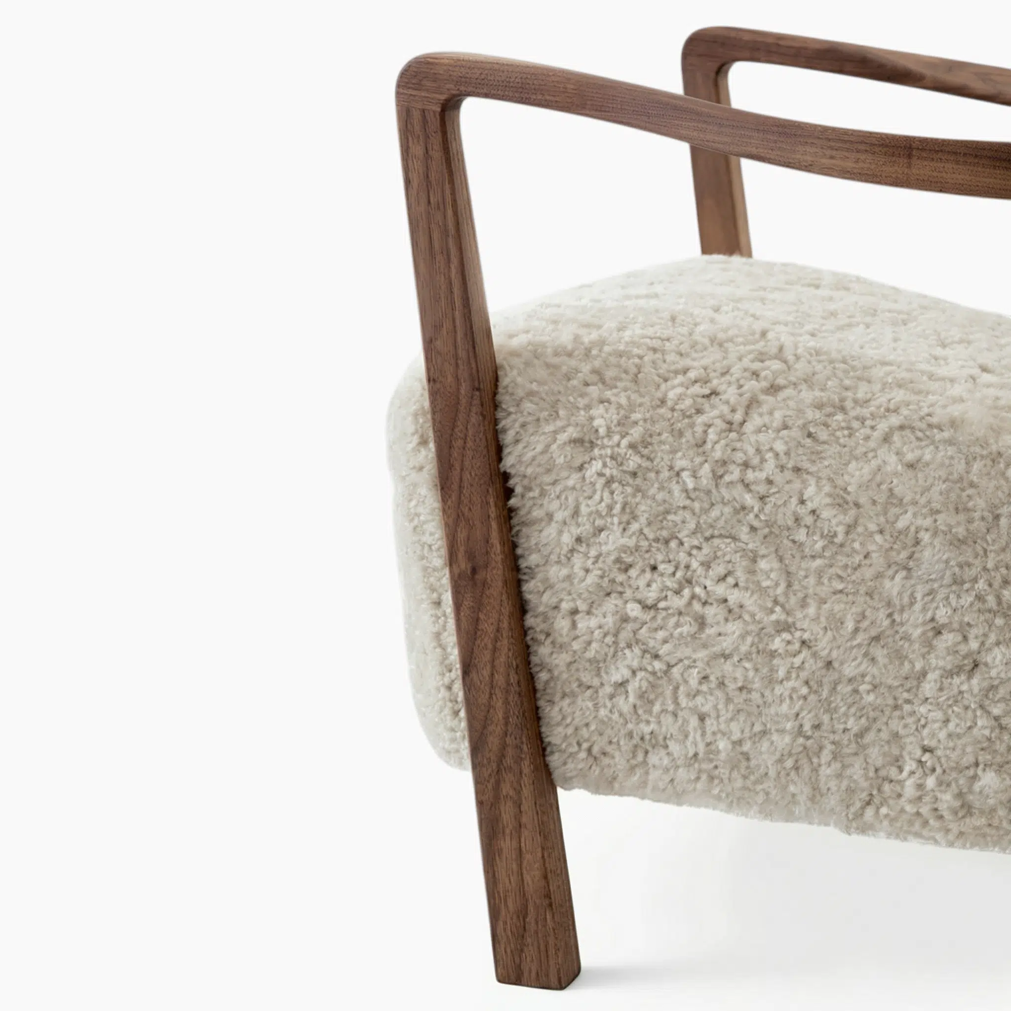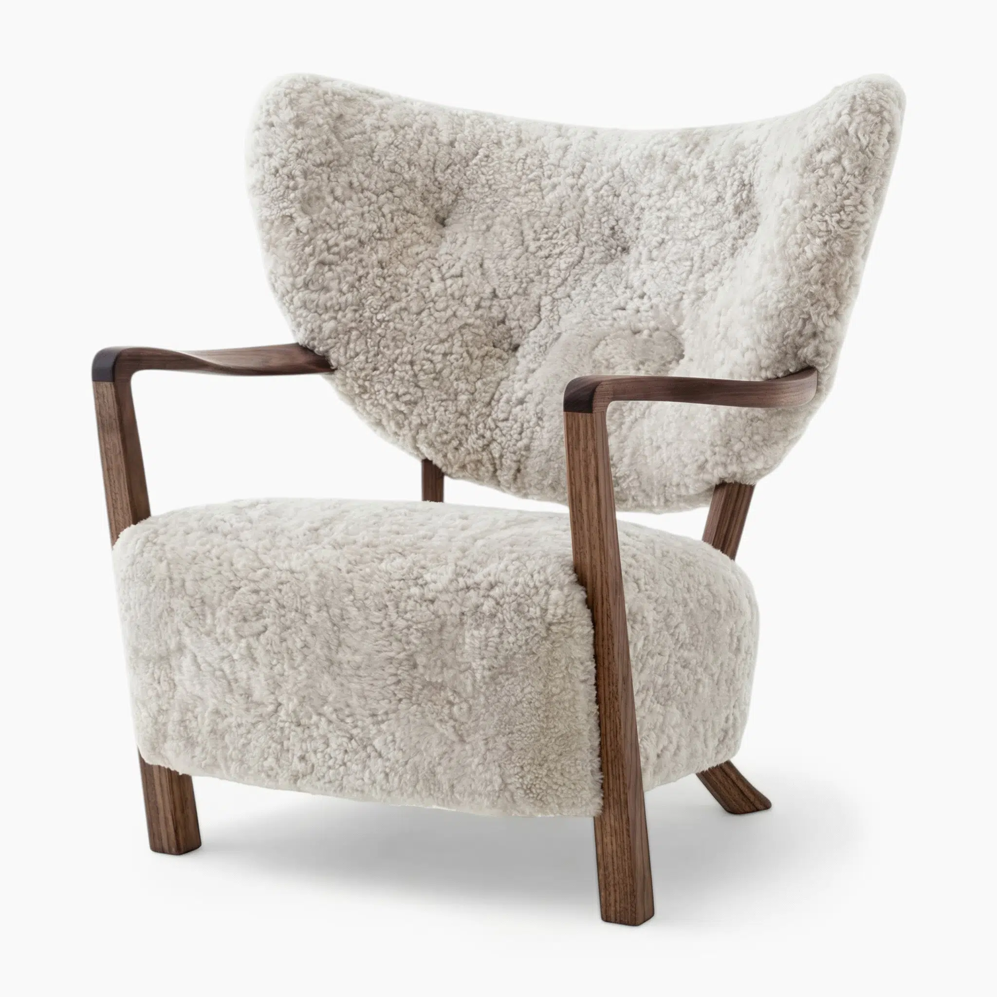 Emerging from the golden age of Danish modernism, the Wulff ATD2 Chair and Ottoman capture the warmth and craftsmanship of mid-century design. With its wing-shaped back, organic contours, and hand-finished wooden frame, it embodies both sculptural beauty and inviting comfort. Wrapped in soft sheepskin upholstery, this timeless piece offers a cozy retreat and a refined presence that enhances any living space.