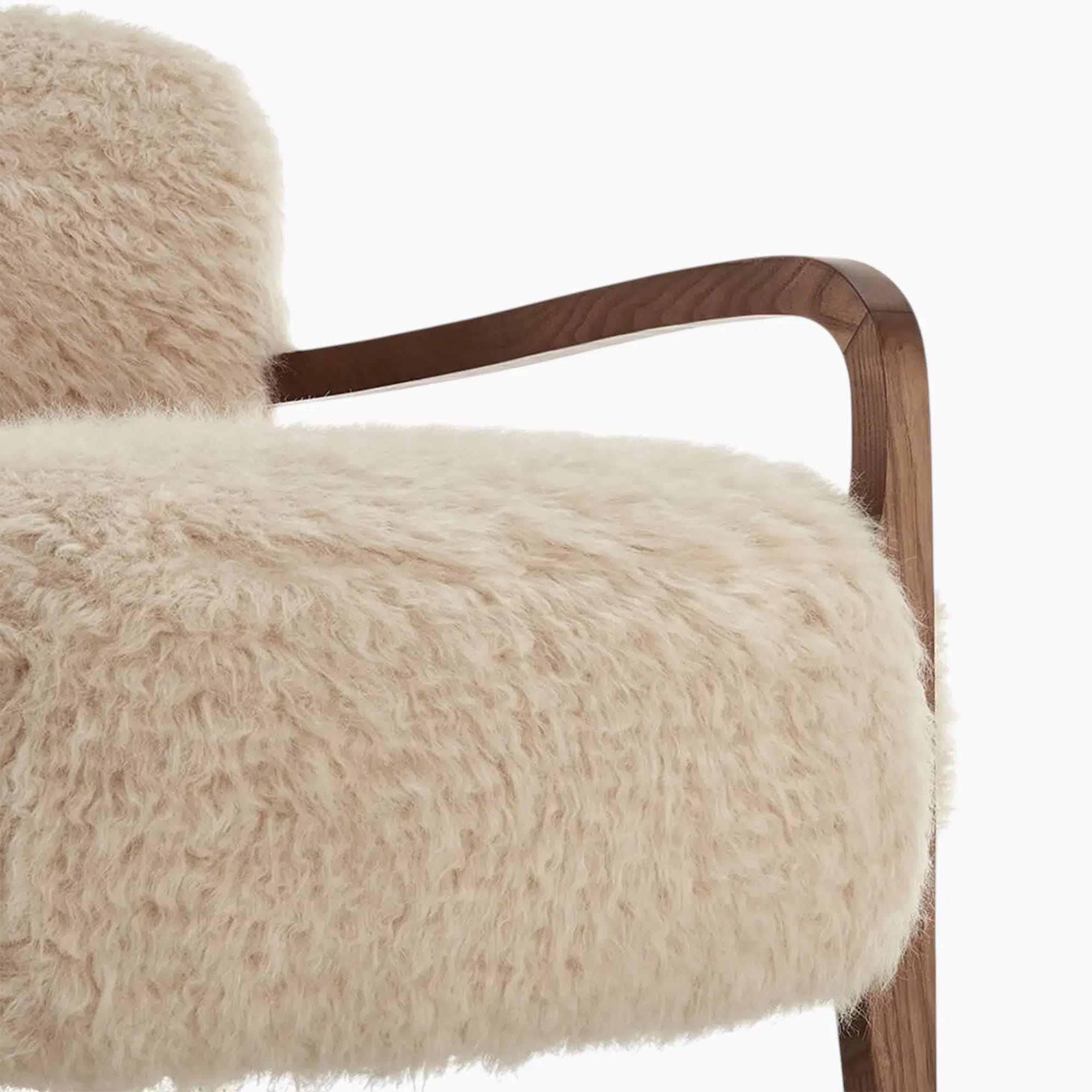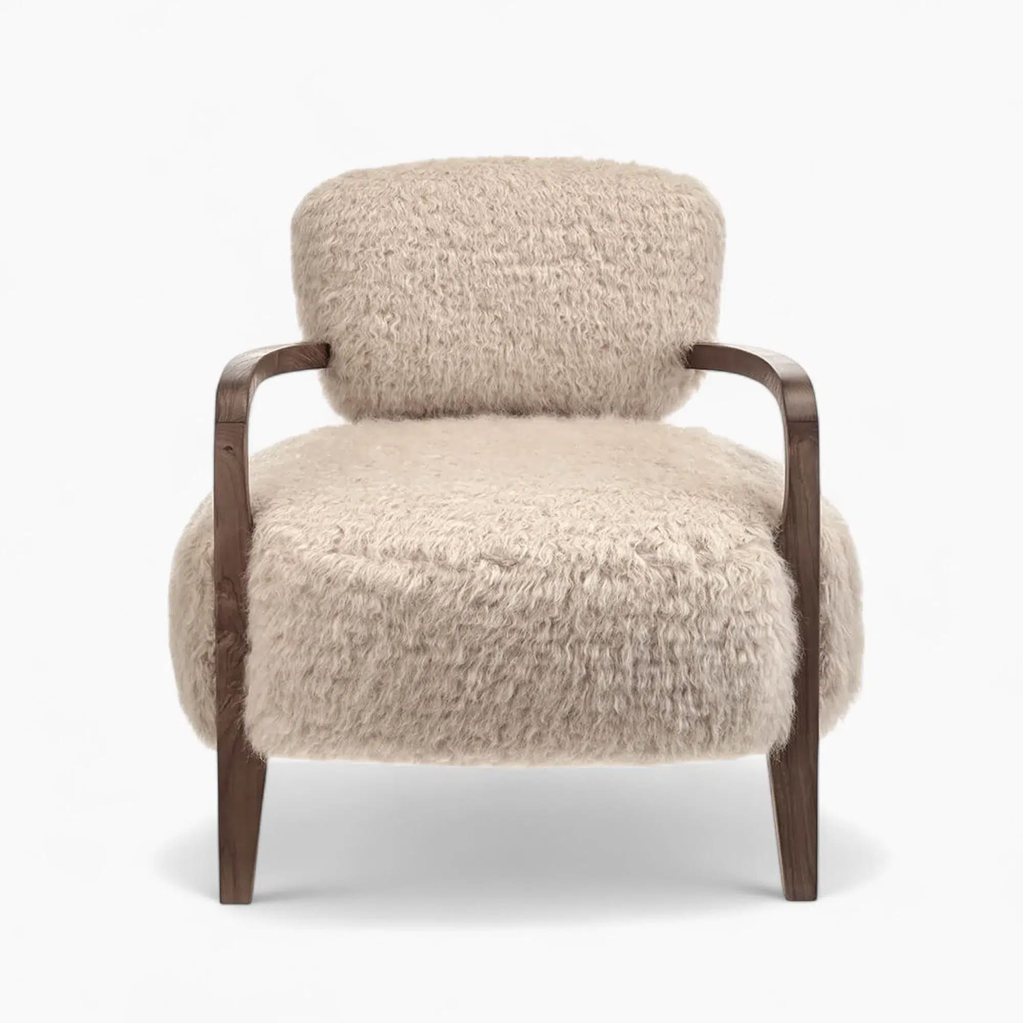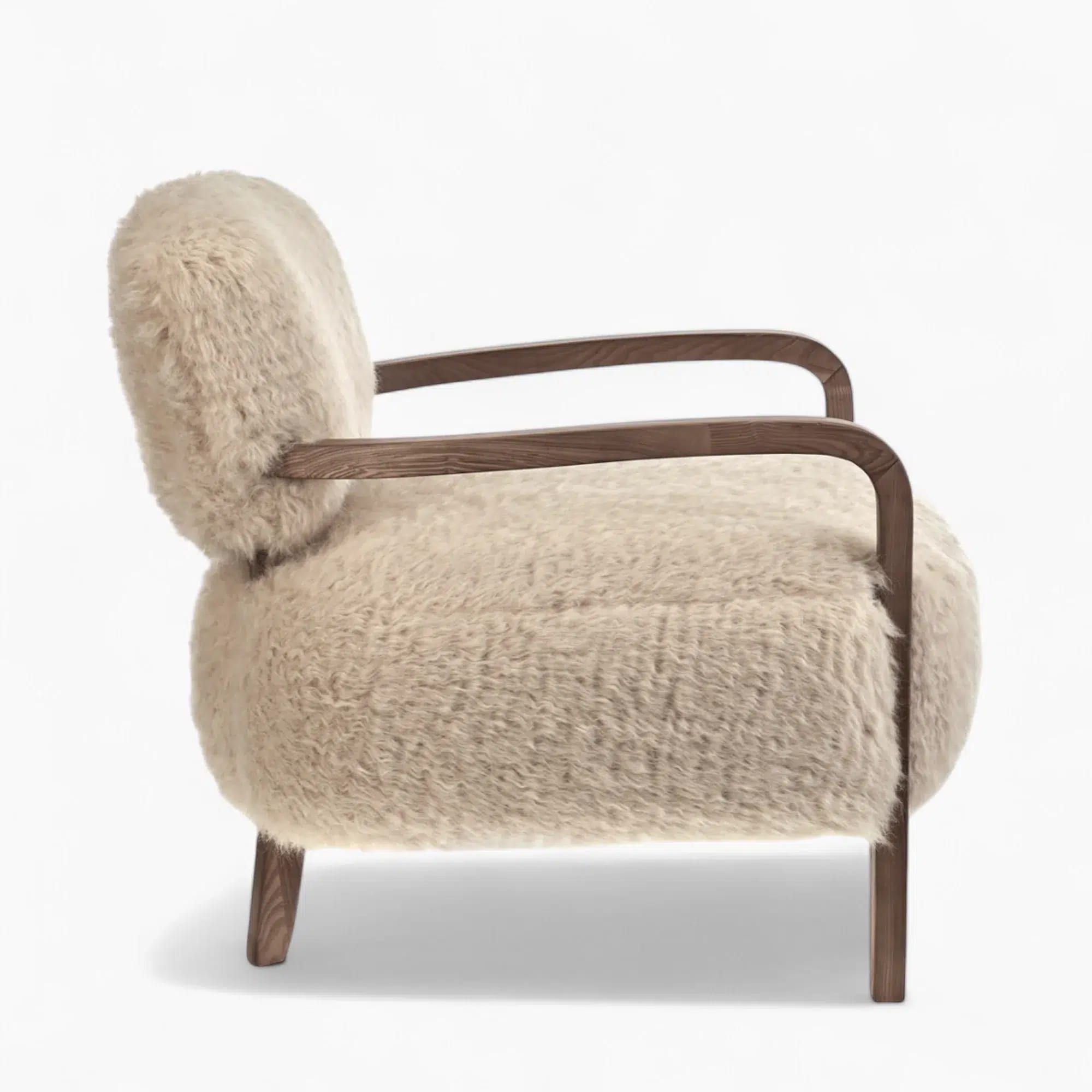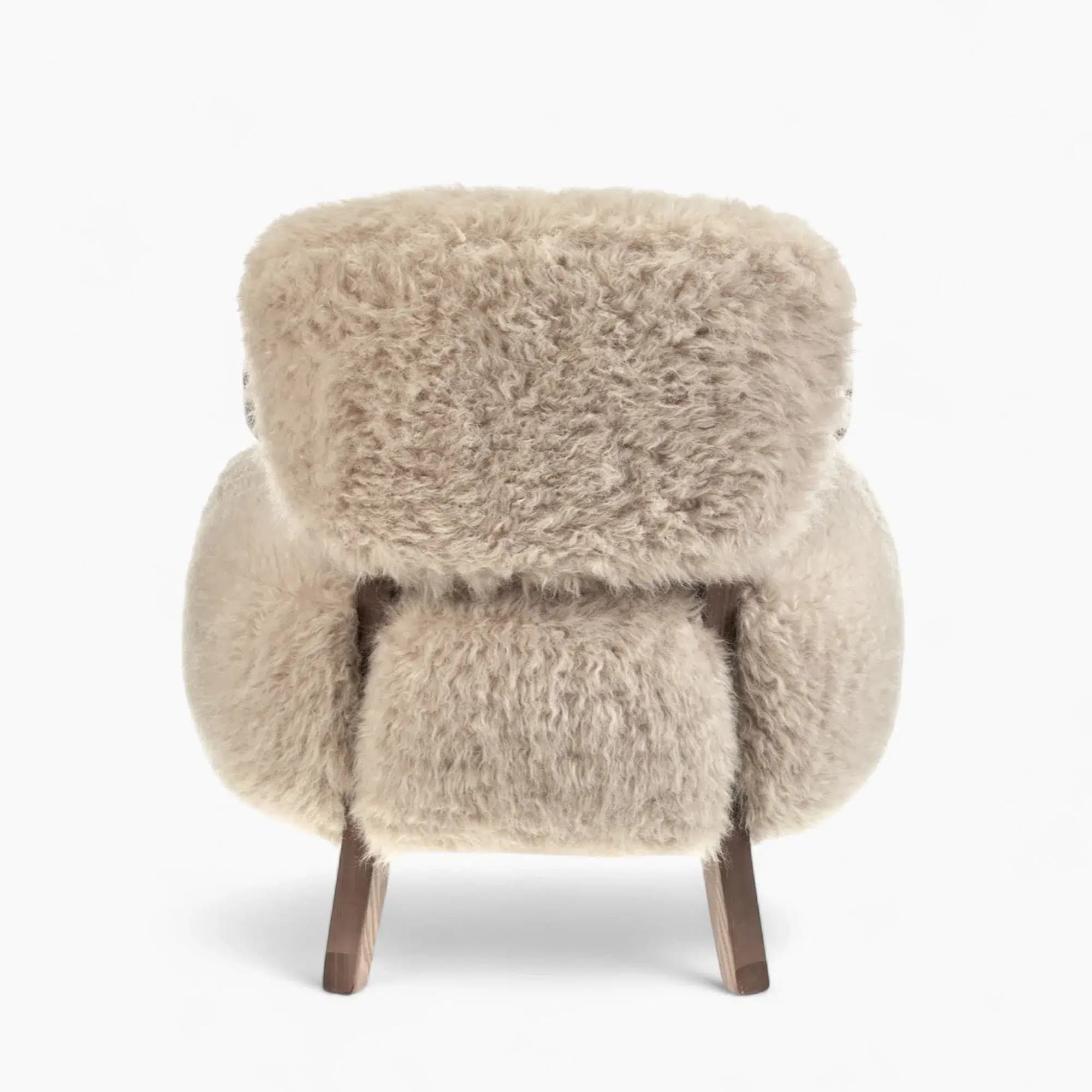 Rooted in the elegance of 1940s Parisian design, the Yeti Sheepskin Armchair and Ottoman bring together sculptural form and luxurious comfort. Upholstered in genuine New Zealand sheepskin, it offers an irresistibly soft and breathable surface that wraps the body in warmth. Supported by a solid oak frame, its organic curves and plush texture create a refined yet inviting centerpiece.